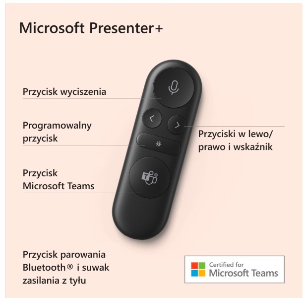 Microsoft Preser+ позволит вам представлять презентации и участвовать в собраниях лично или практически - после нажатия кнопки. Благодаря этому устройству вы можете легко переключать слайды и сосредоточить внимание получателей на самом важном контенте. Используя докладчик+, вы также быстро успокоитесь и выключите отключение. Кроме того, он сертифицирован для использования с командами Microsoft