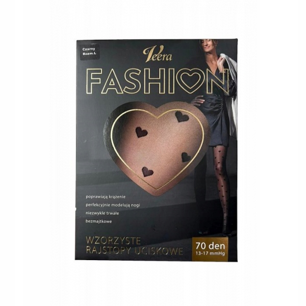 Уникальные узорные колготки vera fashion с градуированным давлением. Каждый день они заботятся о здоровье и красоте ваших ног. чрезвычайно удобно, они адаптируются к вашим ногам, моделируя их и оптическое похудение . Они массируют ваши ноги весь день. Благодаря их свойствам они дают легкость даже самые усталые ноги. они приносят быстрое и эффективное облегчение в случае первых симптомов ослабленного циркуляции, таких как отек, усталость ног, чувство тяжести ног, паучьи вены (капилляры треска). градуированное давление, направленное с лодыжки вверх, помогает весь день перекачивать кровь в сердце. Однако самое важное, что бренд Veera также заботится о вашей красоте. Продукты чрезвычайно долговечны, сделаны из приятного материала, идеально моделируя ноги, благодаря тому, что вы будете чувствовать себя очень комфортно и женственно все время.