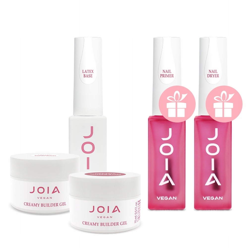 Купите UV/LED Creamy Builder JOIA vegan, Amber Rose, 15 мл, UV/LED Creamy Builder JOIA vegan, Crystal Clear, 15 мл и латексную основу UV/LED JOIA vegan, 8 мл, и получите праймер для ногтей JOIA vegan, 8 мл и сушилку для ногтей JOIA vegan, 8 мл в ПОДАРОК.
