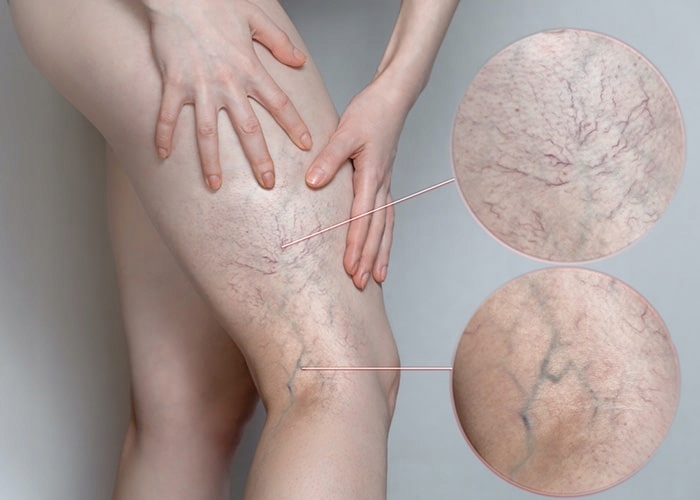 Капиллярная кожа, «сосудистые звездочки» — низкая эластичность стенок сосудов, усиливающаяся при экстремальных температурах, стрессах, изменении погодных условий, воздействии косметики и некоторых лекарств, а также неправильном уходе, может способствовать расширение сосудов. Часто на первых стадиях покраснение появляется и быстро исчезает, однако на более поздних стадиях симптомы сохраняются дольше. Расширение сосудов не следует недооценивать, ведь если на лице это эстетическая проблема, то на ногах оно может указывать на развивающееся заболевание вен. Причины расширения кровеносных сосудов во многом объясняются генетическими факторами и неправильным функционированием организма. Способствовать образованию фиолетовых нитей могут гормональные проблемы, нарушения кровообращения или гипертония, а также сильные перепады температур, солнечные ванны или воздействие мороза.