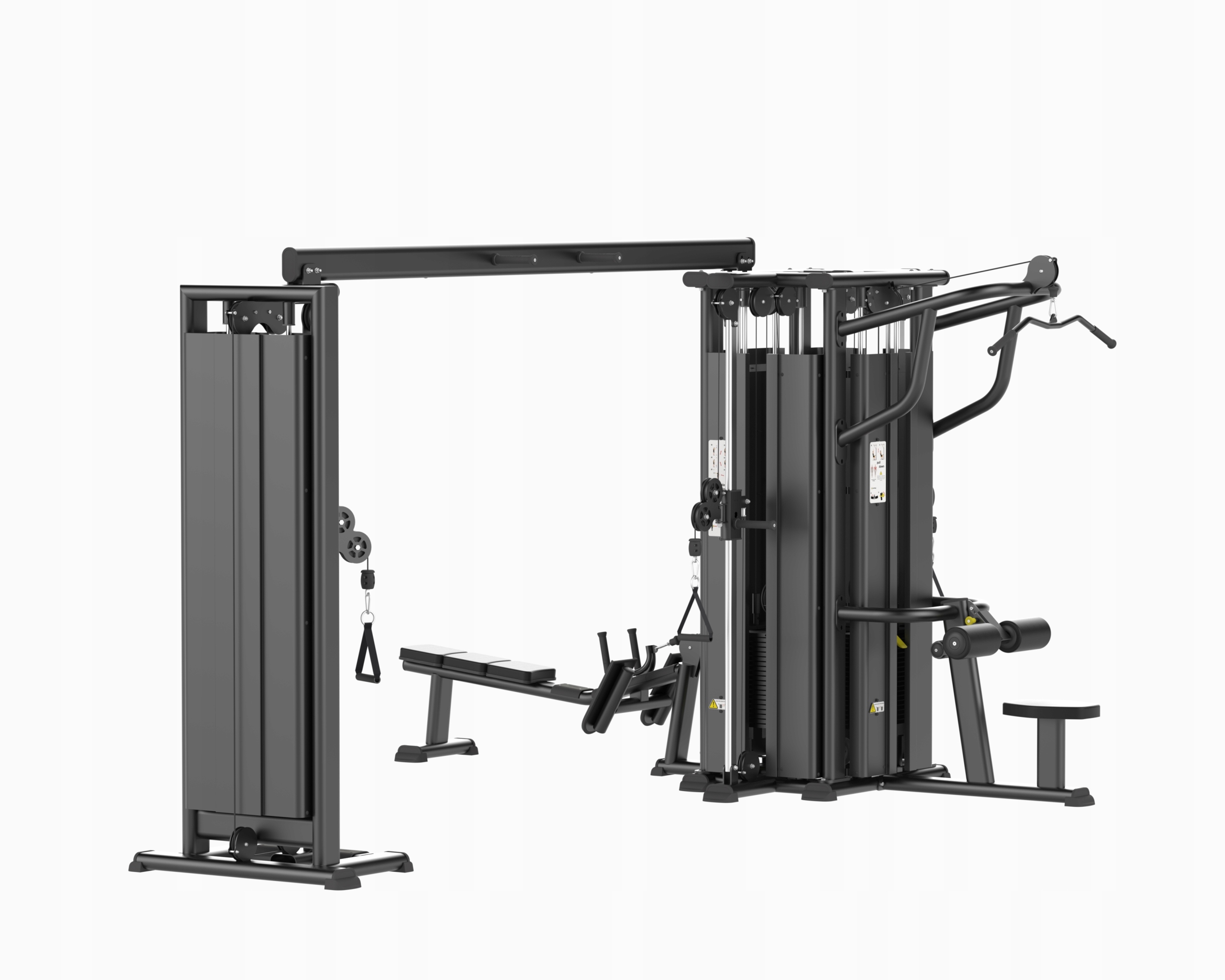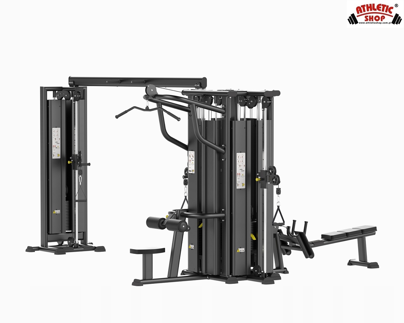Многофункциональная сила прочности, которая позволяет вам одновременно практиковать 5 человек, состоящих из двух веревочных станций и нижнего и верхнего подъема. Устройство предназначено для мышечных упражнений, двух голодов и трех головных плеч, самых широких спинов, мышц спины, грудной клетки и плеча. Структура башни изготовлена из плоско оплачиваемой схватки с размерами 125x60x3.