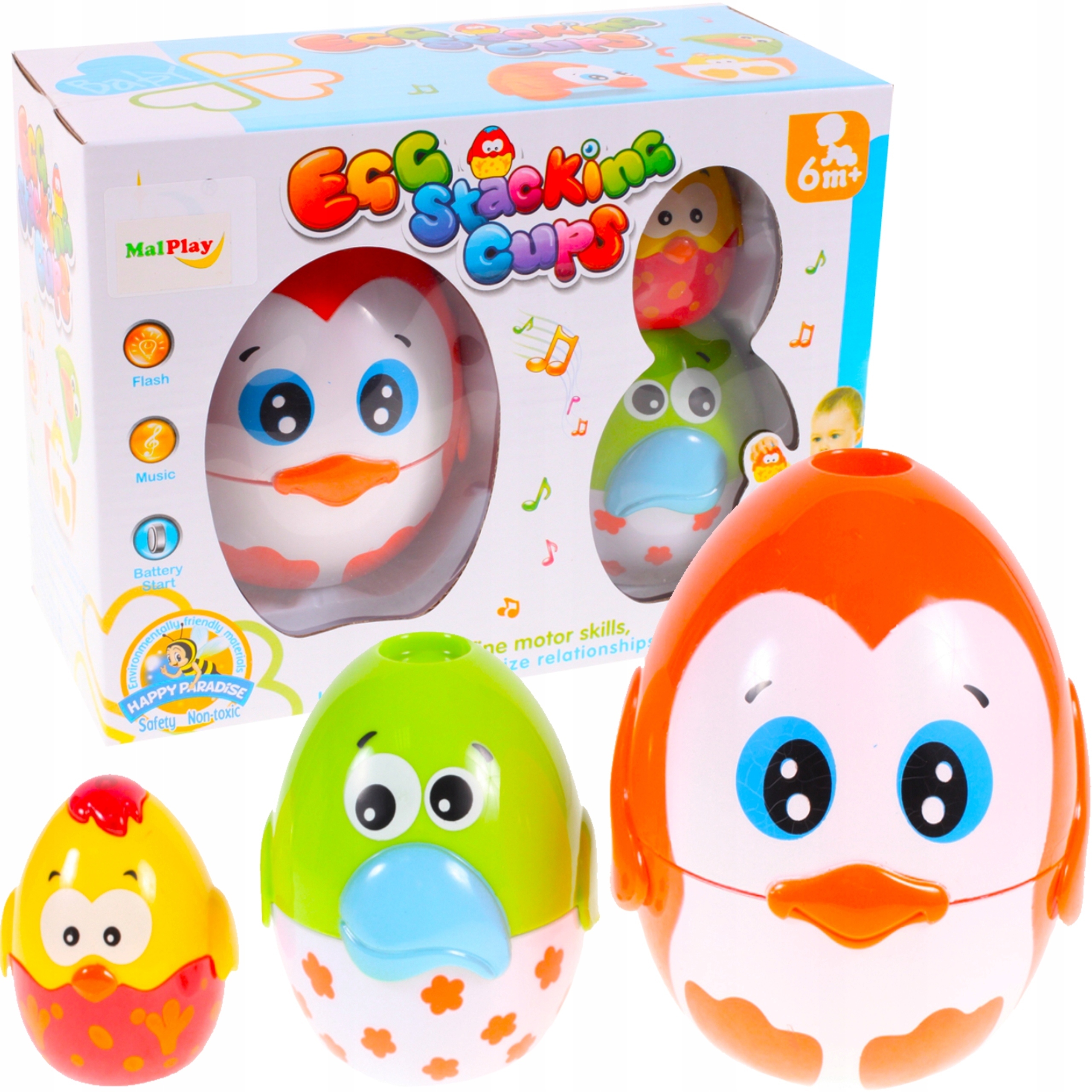 3 элемента, которые можно собрать в пирамиду. В игрушках представлены фигурки птиц. Яйца можно воссоздать и поместить меньшие внутрь больших яиц, как матрешку. При активации самое маленькое яйцо воспроизводит 2 мелодии, а его кончик загорается.