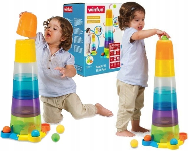 Разноцветные формы можно размещать на высоте до 65 см. Складывание штабелями Башня развивает ловкость рук и тренирует зрительную координацию. Игра также предоставляет множество возможностей для физических упражнений. Мяч нужно бросить в отверстие на самом верху башни и пригнуться, чтобы подхватить его, когда он покатится вниз. Внимание ребенка также привлекают спиралевидные шарики. Формы можно брать с собой купаться или играть в песочнице. Башенка легко собирается, легка и ее удобно брать с собой куда угодно, где можно играть в одиночку или с друзьями.