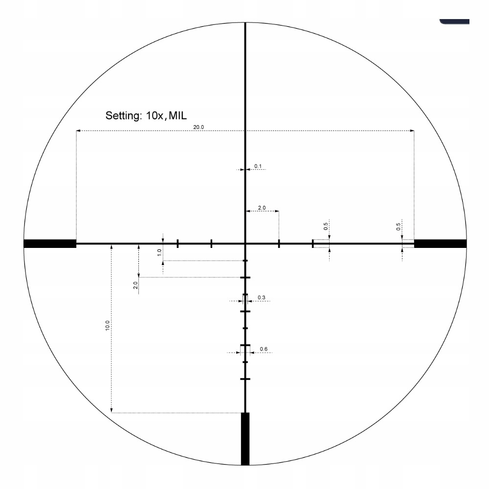Прицельную сетку можно отрегулировать примерно на 35 мил одним щелчком мыши на 1/10 мил. Дополнительно окуляр можно настроить на угол диоптрий от 2 до +2. Алюминиевая трубка имеет диаметр 30 мм, что позволяет использовать ее с широким спектром креплений для оптических прицелов, доступных на рынке. Герметичный алюминиевый корпус 6061 T 6 соответствует стандарту герметичности IP67.