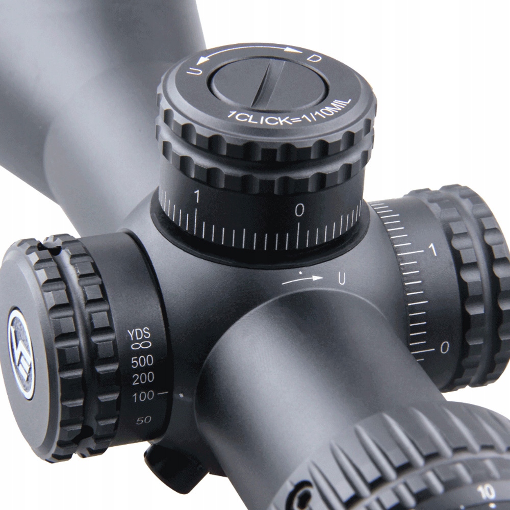 Прицельную сетку можно отрегулировать на 17,5 мил одним щелчком мыши на 1/10 мил. Дополнительно окуляр можно настроить на угол диоптрий от 2 до +2. В комплект также входит крепление на рейку Weaver. Когда телескоп не используется, его стоит накрыть неопреновым чехлом. Фокус объектива можно регулировать от 10 ярдов до бесконечности с помощью ручки.