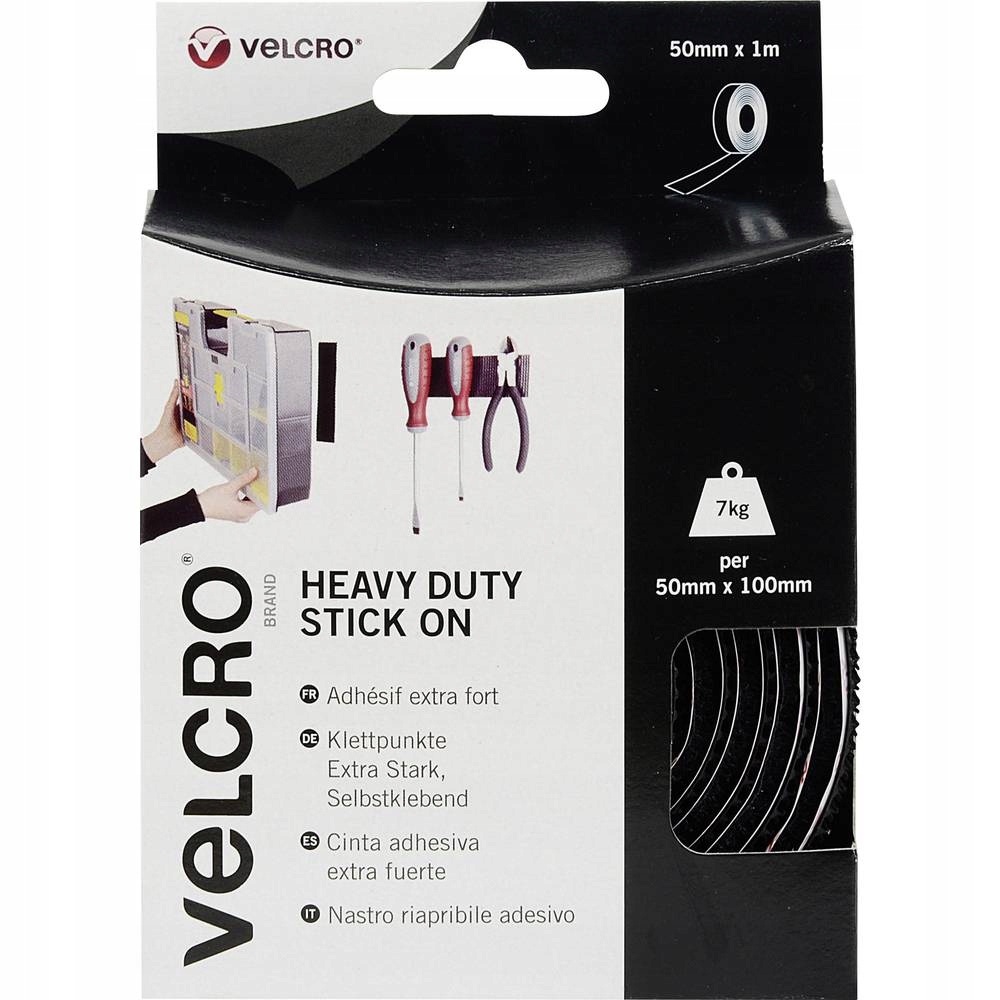 Лента-липучка для приклеивания элемента с петлями и крючками, повышенной прочности (Д х Ш) 1000 мм х 50 мм черная VELCR