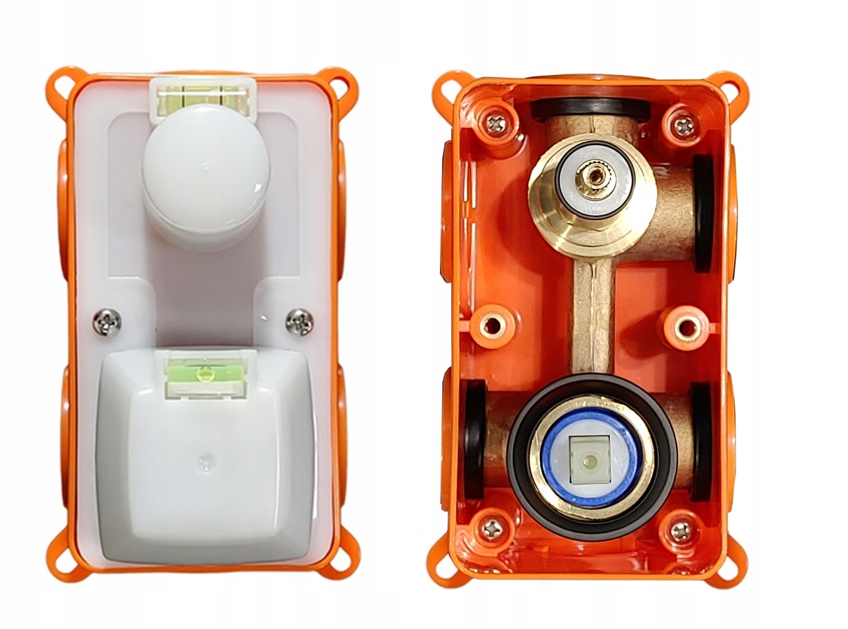 Система EBOX используется для установки смесителя скрытого монтажа. Маскирующий элемент с уровнем облегчает правильную установку батареи в стене, защищает внутреннюю часть EBOX от загрязнения во время установки и гарантирует водонепроницаемость. Система также обеспечивает легкий доступ к внутренним компонентам аккумулятора для правильного обслуживания.