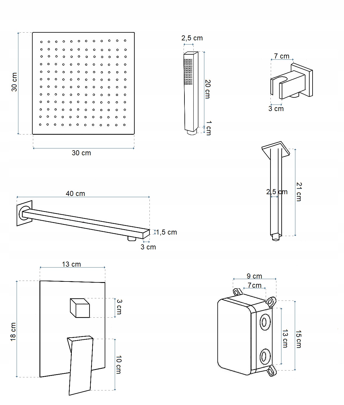 - тропический душ ULTRA-SLIM, квадрат 30 x 30 см