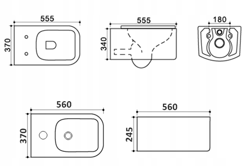 - Тип унитаза и биде: подвесной