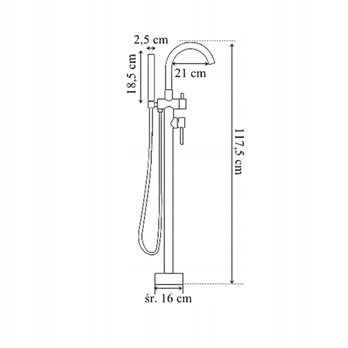 Смеситель для ванны имеет корпус из латуни черного матового цвета. Такая технология обеспечивает надежность и устойчивость к ржавчине.