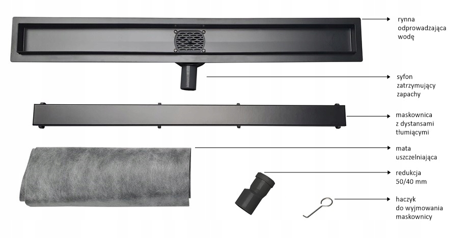 VELDMAN CZARNY MAT ODPŁYW LINIOWY VECTOR 2w1 80 cm