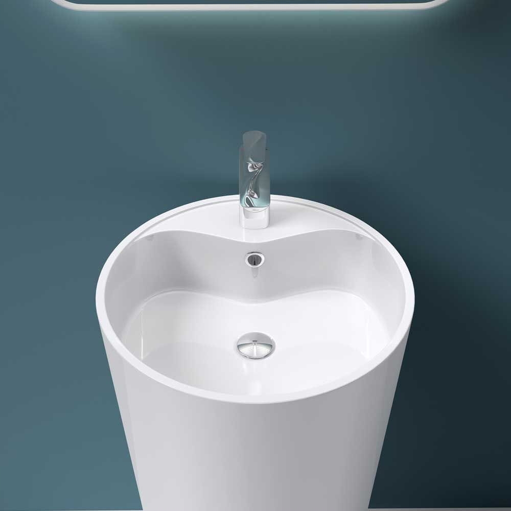Умывальник изготовлен из высококачественного белого конгломерата.