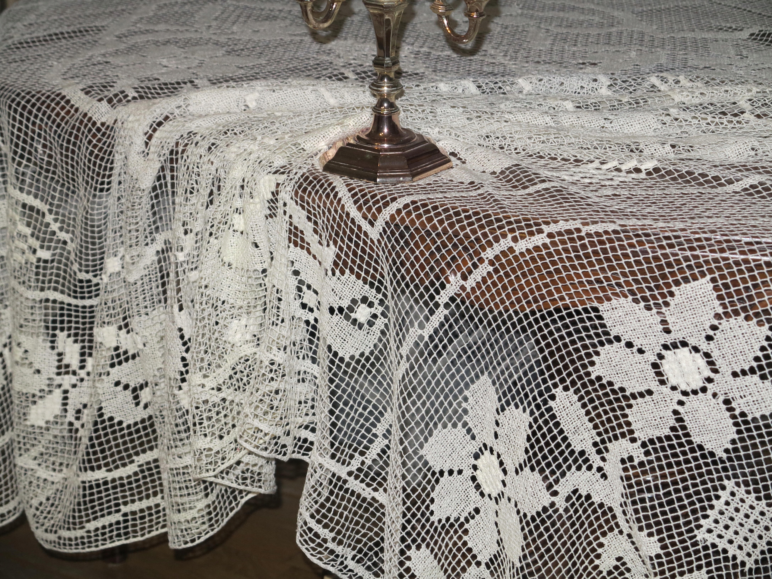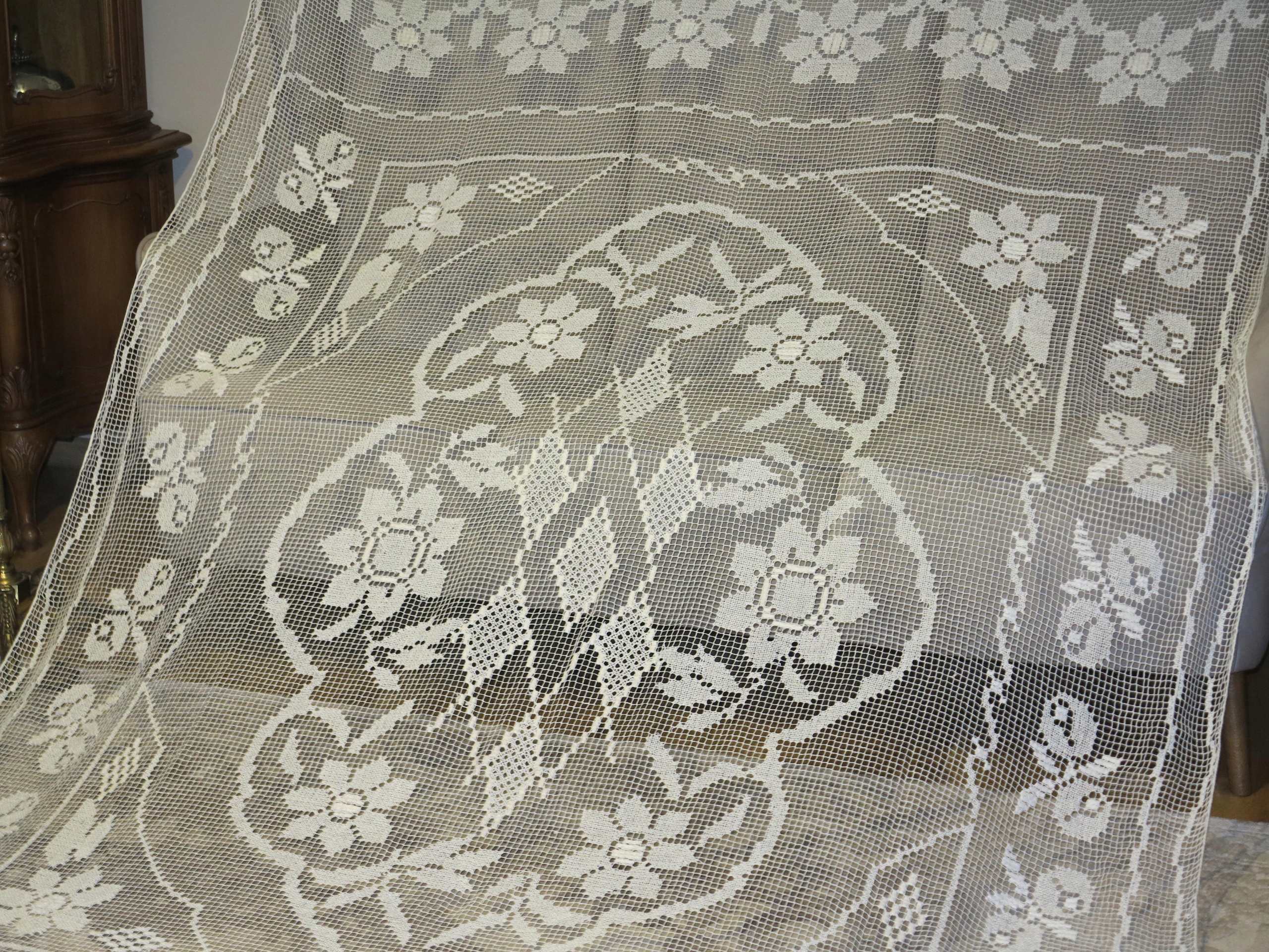 ДЛЯ АНТИКВАРИАТА - УНИКАЛЬНУЮ, КРАСИВУЮ, ВЕКОВУЮ, ОГРОМНУЮ ПИН-СКАТЕРТЬ/ШТОРУ, РУЧНОЙ РАБОТЫ ИЗ ХЛОПКОВЫХ НИТЕЙ, СО СТИЛЬНЫМИ УЗОРАМИ И РОЗАМИ. ЦВЕТ LIGHT TUBE ECRU