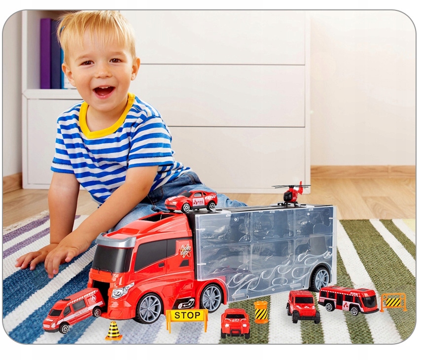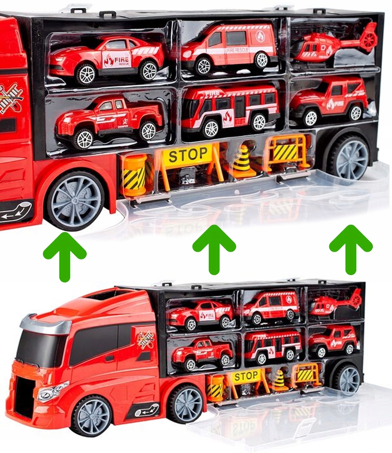 Если ваша коллекция пружин лежит на полке или в коробке, теперь вы можете хранить их вместе в одном месте. В эвакуаторе имеются специальные места для автомобилей, вертолета и предупредительные знаки, благодаря чему они не столкнутся друг с другом и не повредятся. После игры ребенок легко уберет игрушки.