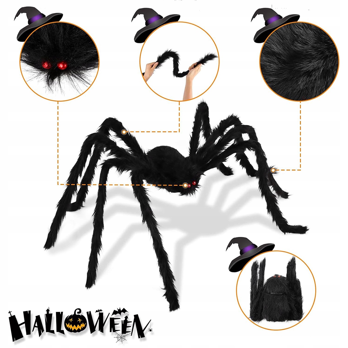 Украшение «Паук на Хэллоуин»: идеальная опора для украшения вашего сада, гостиной, спальни, офиса или прихожей для вечеринок на Хэллоуин. Это также отличное дополнение для вечеринок на тему зомби, вечеринок ужасов, домов страха, ужина на Хэллоуин, страшной ночи и так далее. Оно наверняка будет пользоваться успехом у угощений и гостей.