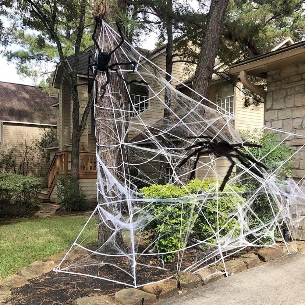 🕸️🕸️Набор «Паук для Хэллоуина»: содержит треугольную паутину длиной 5 м, черного паука 125 см/30 см, 10 миниатюрных пауков и 50 г эластичной паутины. Вы можете свободно разместить их в саду, на лужайке, стенах, светильниках, обеденном столе и т. д. Они наполнят весь ваш дом жуткой атмосферой Хэллоуина, сделав празднование в этом году еще более захватывающим.
