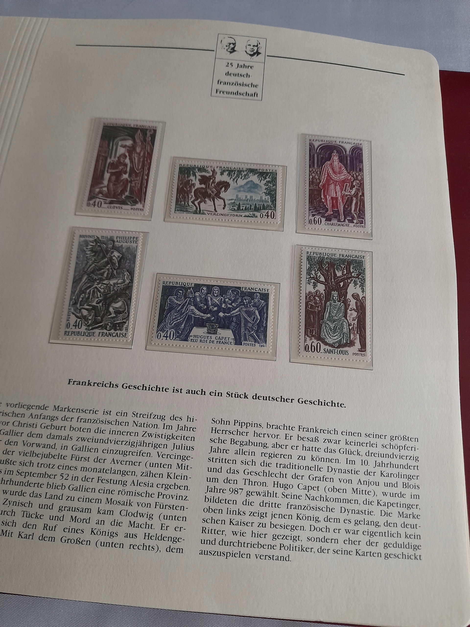 В галерее 58 фотографий. ОГРОМНЫЙ АЛЬБОМ С 6 КОЛЬЦАМИ ИЗ 50 КАРТ С КОЛЛЕКЦИЕЙ БЕЗШТАМПОВАННЫХ ЦЕННОСТЕЙ С КЛЕМОМ ИЗ ФРАНЦИИ И ГЕРМАНИИ + FDC + ДРУГИЕ ЦЕННОСТИ. Ценности в защитных хавидах. Значения указаны на 50 страницах альбома, поэтому комплектность примерно 100%. Все показано на фотографиях. Состояние как на фотографиях.