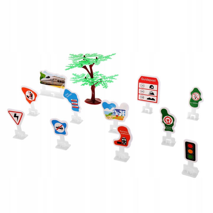 В наборе есть две отдельные дорожки, благодаря чему по ним могут двигаться одновременно автомобиль и поезд. Малыш сможет составить из доступных элементов различные конфигурации, что позволит интересно развлечься. Трек имеет интерактивные элементы, такие как светящийся мост.