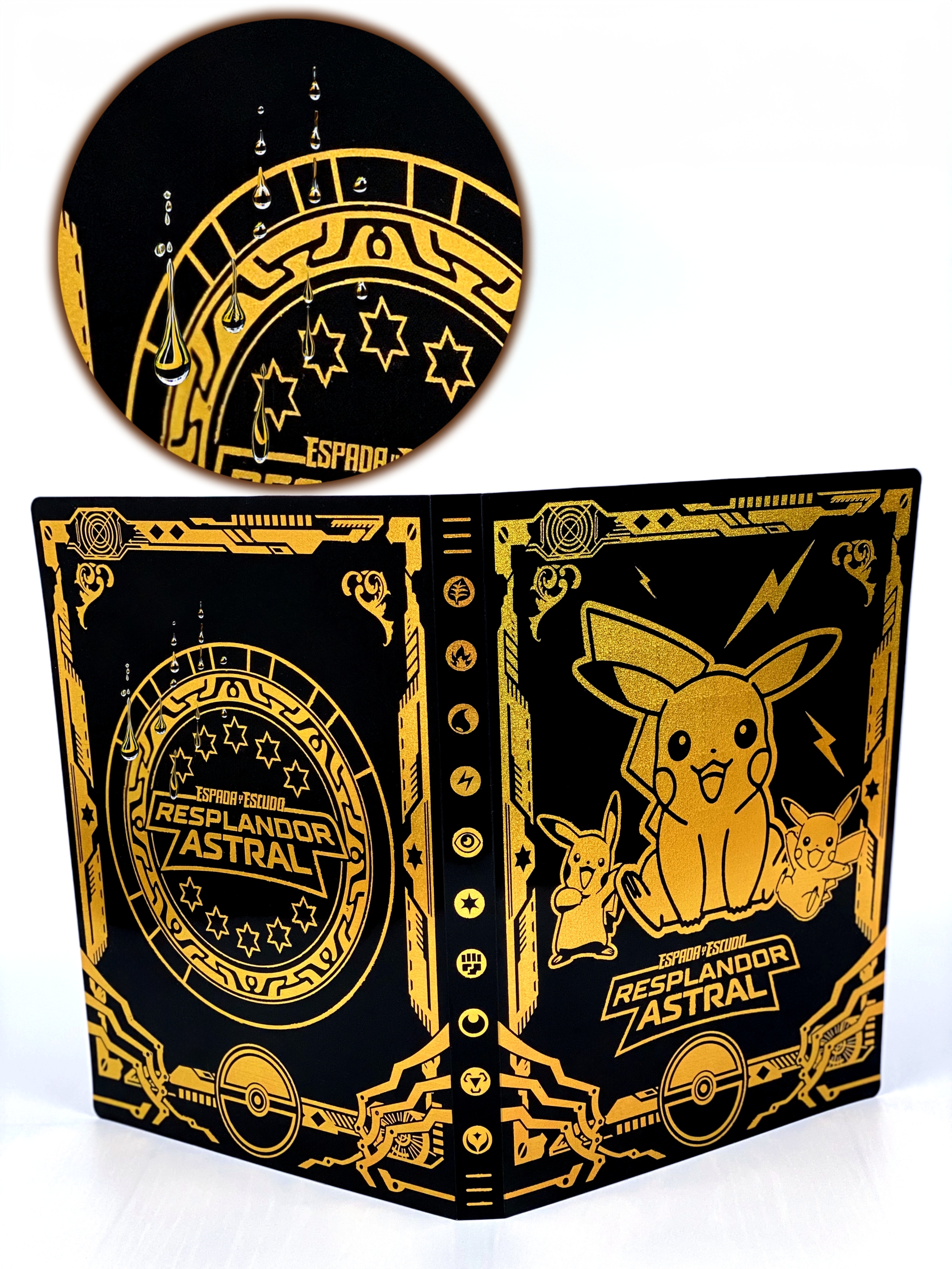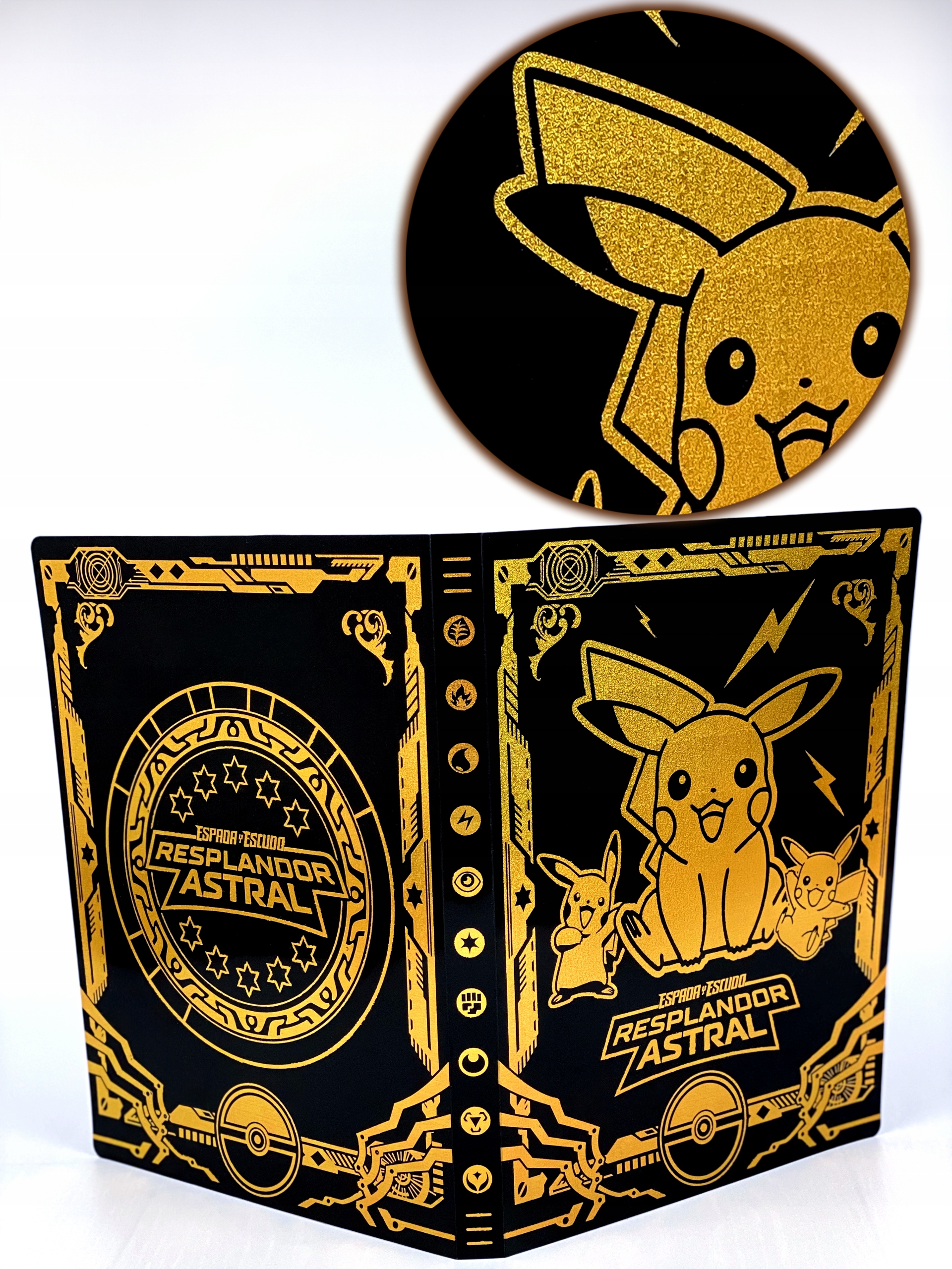 БОЛЬШОЙ ВОДОНЕПРОНИЦАЕМЫЙ ЧЕРНО-ЗОЛОТОЙ ГЛЯНЦЕВЫЙ АЛЬБОМ С КРАСИВЫМ УЗОРОМ ПИКАЧУ + ДОПОЛНИТЕЛЬНЫЕ БЕСПЛАТНЫЕ КЛЕЯЩИЕСЯ НАКЛЕЙКИ ПИКАЧУ ✨