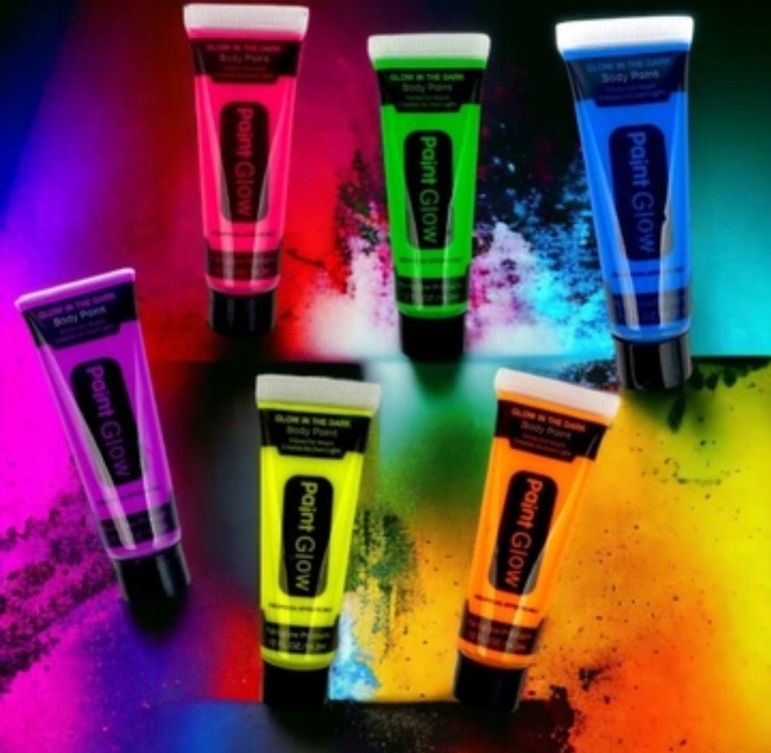 флуоресцентные краски для лица и тел светящиеся ультрафиолетовые набор 6 цветов 24 штуки