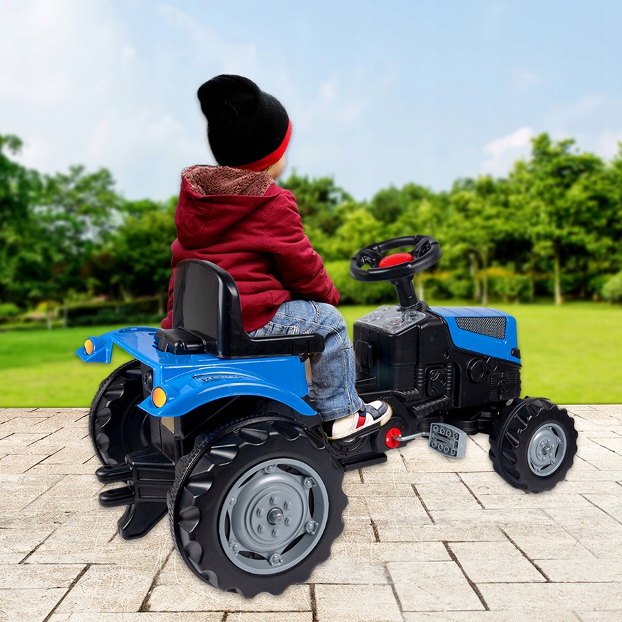 Трактор оснащен крюком, который позволяет ребенку тянуть легкие прицепы, предметы или игрушки, что развивает координацию и моторику.