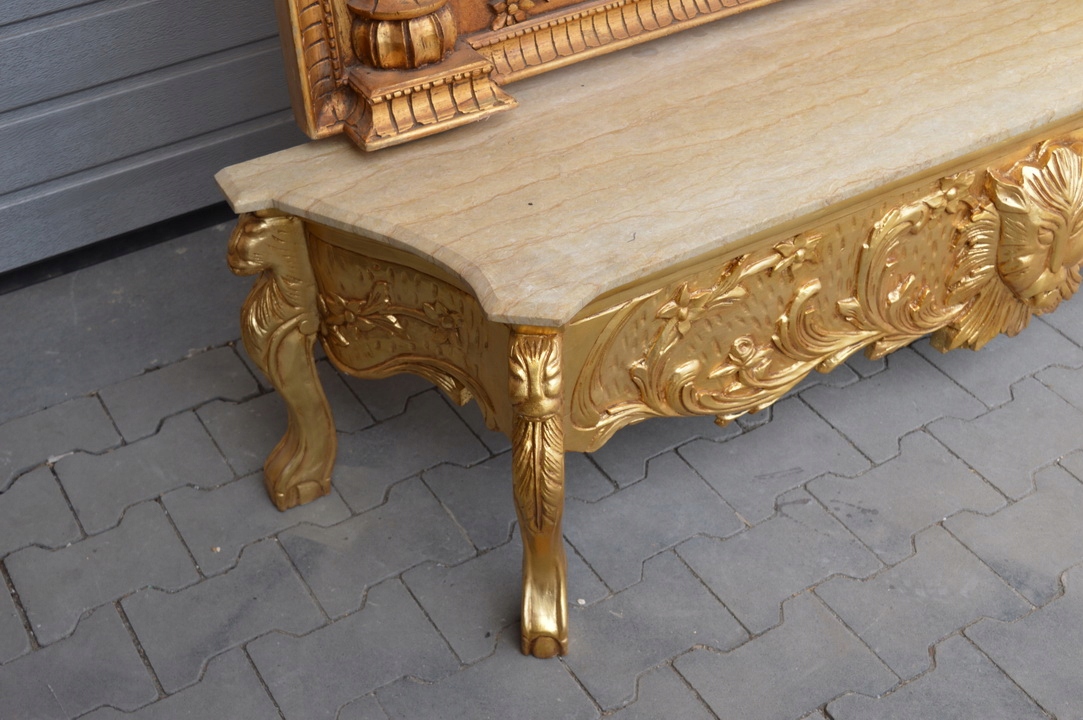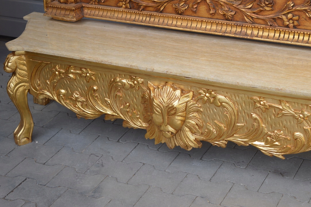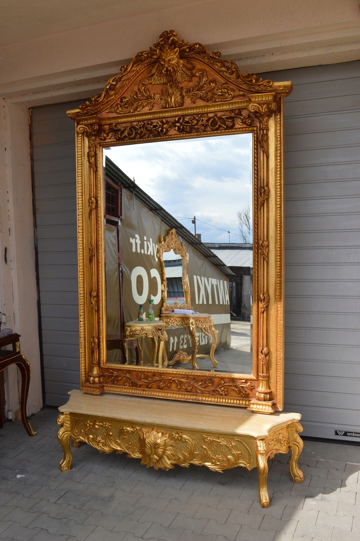 Предмет сегодняшнего аукциона – невероятно красивая массивная золотая консоль с зеркалом в виде льва. Дерево - очень тяжелое.