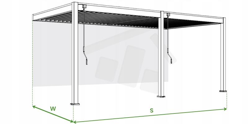 Крыша перголы состоит из ручных или автоматическиуправляемых кровельных ламелей, вращающихся на угол до 135°, поворачиваемых с помощью удобной рукоятки. Благодаря широкому диапазону регулировок вы можете точно регулировать количество света, тени и вентиляции под беседкой. Когда ламели полностью закрыты, крыша создает герметичную поверхность, эффективно защищающую от дождя. Простая и надежная система управления делает перголу полностью функциональной без необходимости использования электричества – идеально подходит для пользователей, которые ценят простоту, независимость и долговечность.