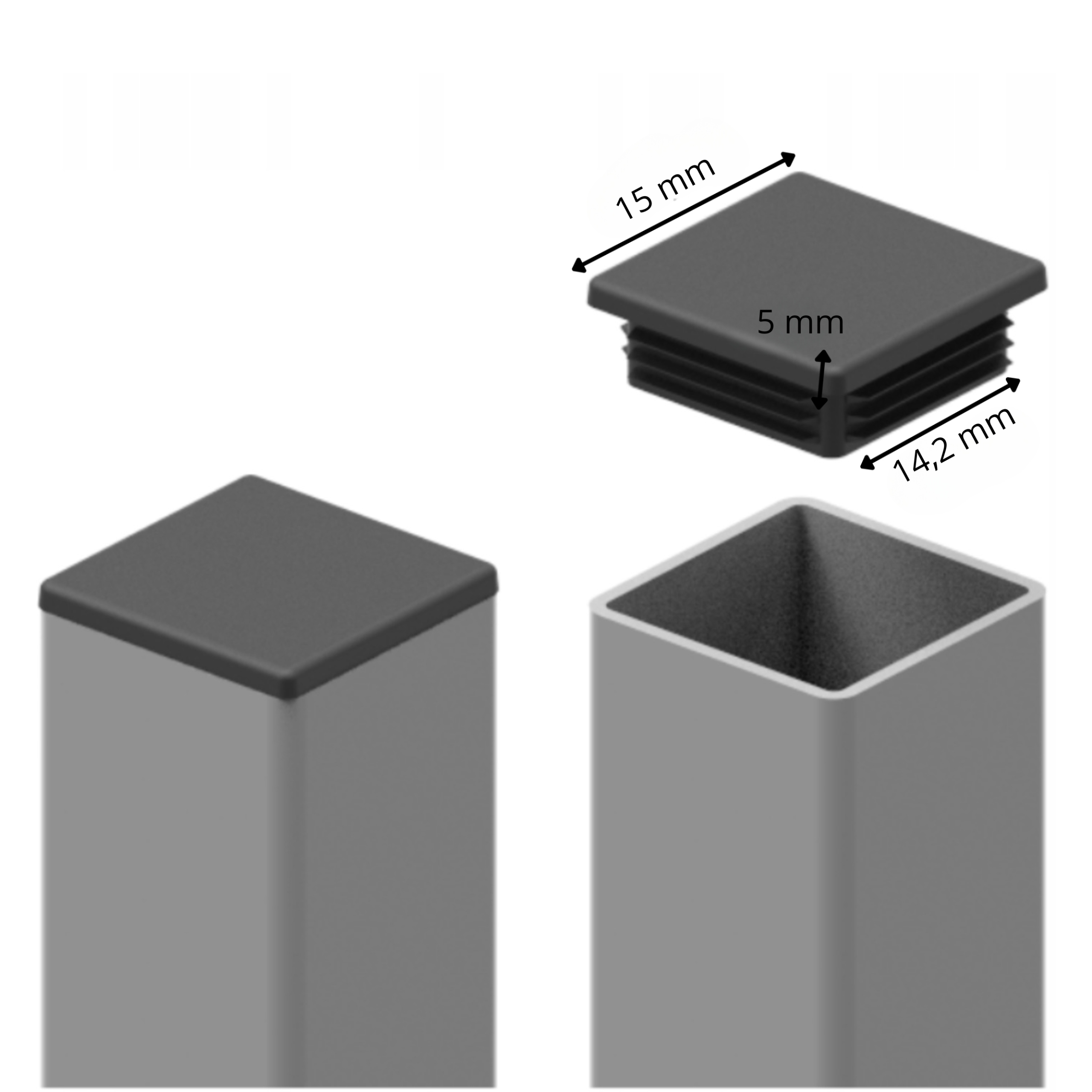 Пластическая заглушка для квадратного профиля с внешним перекрестным разрешением 15x15 мм h1> подходит для профиля толщиной толщины стенки от 1,0 до 2,0 мм h2>