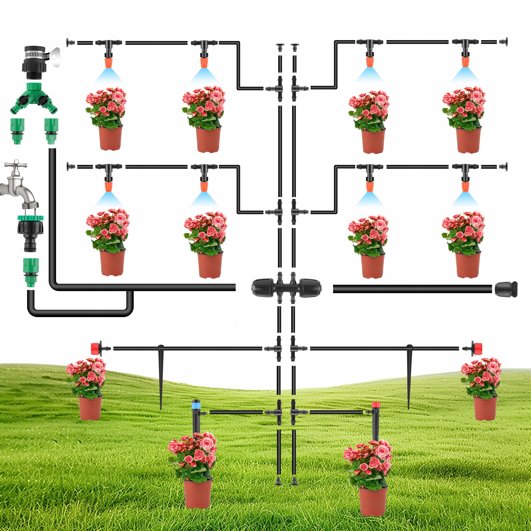Садовая ирригационная система, комплект ирригационной системы идеально подходит для орошения, полива газонов, дворов, садов, орошения овощей, охлаждения крыш, орошения, теплиц, бассейнов и т. д.