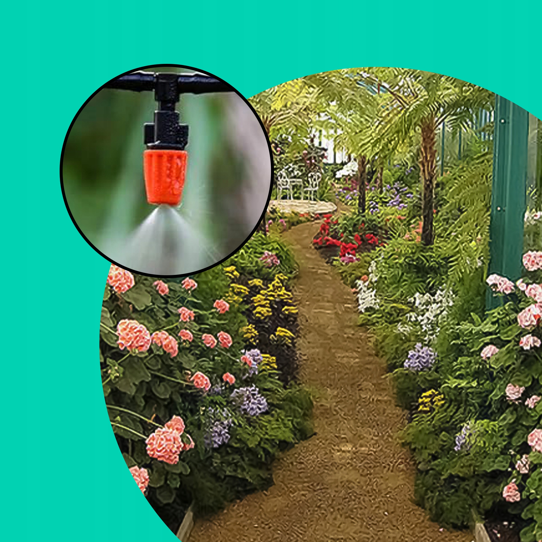 Система орошения теплицы, проста в установке, не нужно копать или прокладывать трубы, регулируемый объем воды. Опрыскиватель для орошения сада самообслуживания упрощает установку, и у вас есть отличная система охлаждения или система орошения сада.