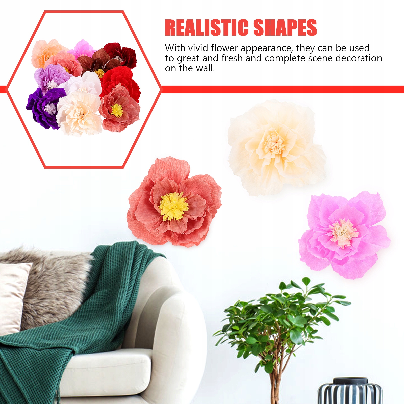 ✅ Благодаря оживленному цветочному внешнему виду, их можно использовать для великолепного, свежего и полного украшения сцены на стене