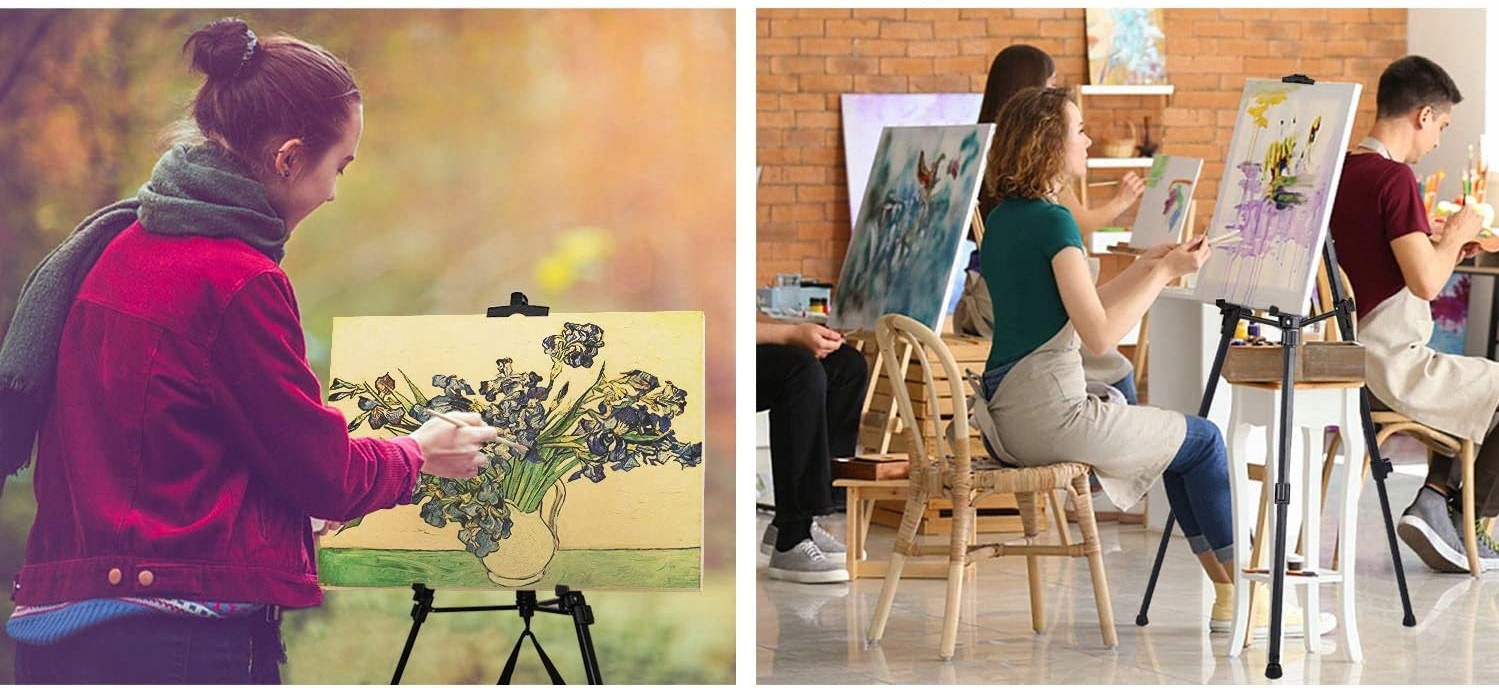 - На открытом воздухе — благодаря легкой конструкции вы можете вынести его в поле и творить при естественном освещении.