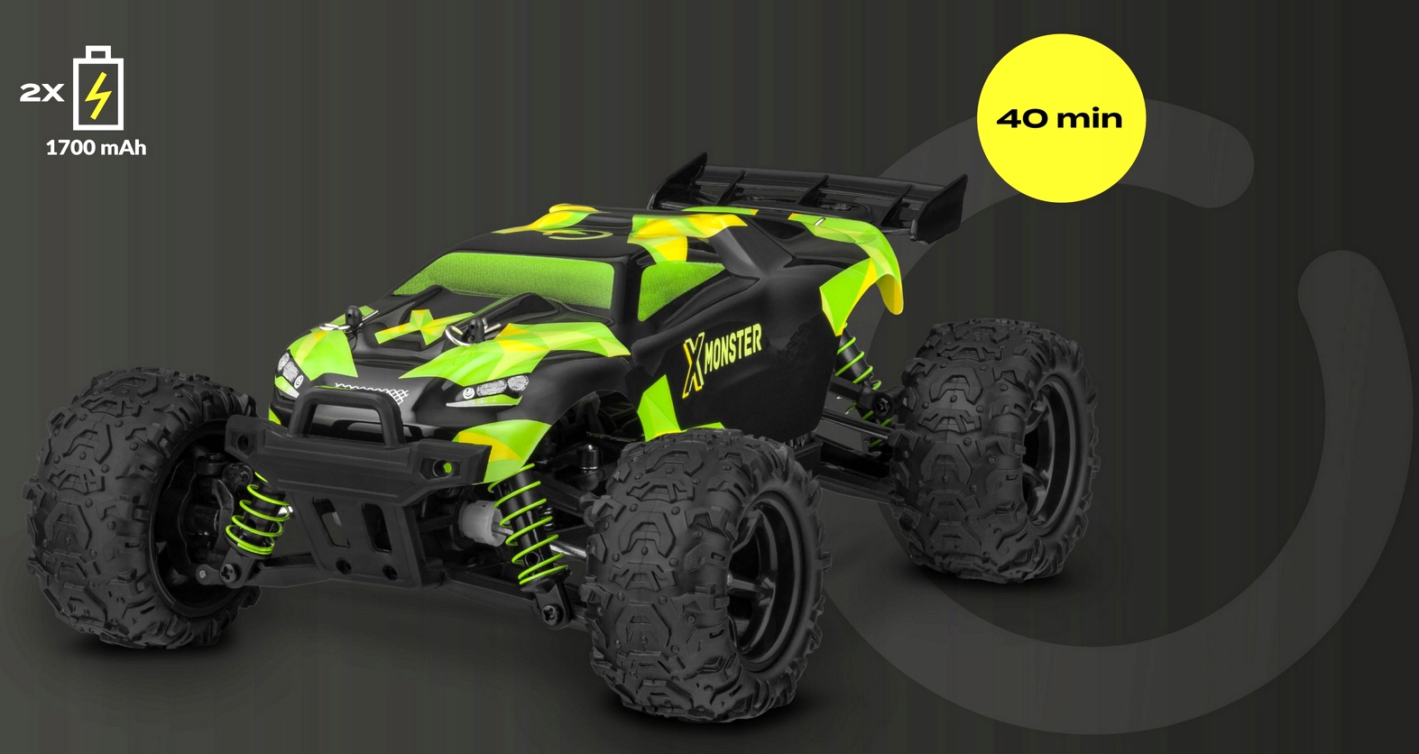 Такое удовольствие должно длиться долго. Два аккумулятора общей емкостью 1700 мАч обеспечивают высокую производительность вождения без подзарядки до 40 минут. X-Monster также оснащен системой управления аккумулятором, которая защищает аккумулятор от чрезмерного использования и продлевает срок его службы.