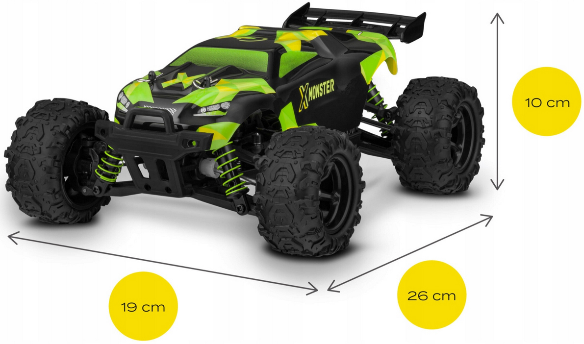 Спортивные решения и потрясающая производительностьне единственные преимущества X-Monster 3.0.Большой размер структура, что вождение этого автомобиля доставляет еще большее удовольствие, а преодоление препятствий выводит удовольствие на совершенно новый уровень. Это не маленькая быстрая машинка, это настоящий монстр среди радиоуправляемых машинок.