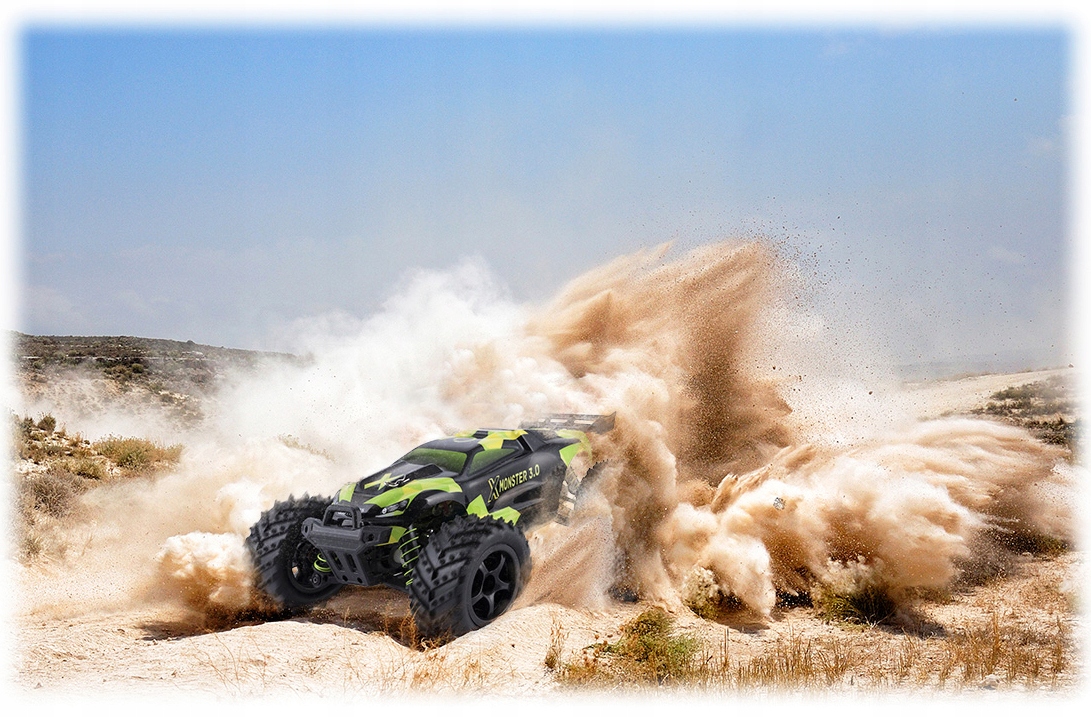 Быстрый старт, тяга на любой поверхности, легкое управление и способность преодолевать практически вертикальные подъемы. Все это возможно с раллийным автомобилем Monster 3.0.