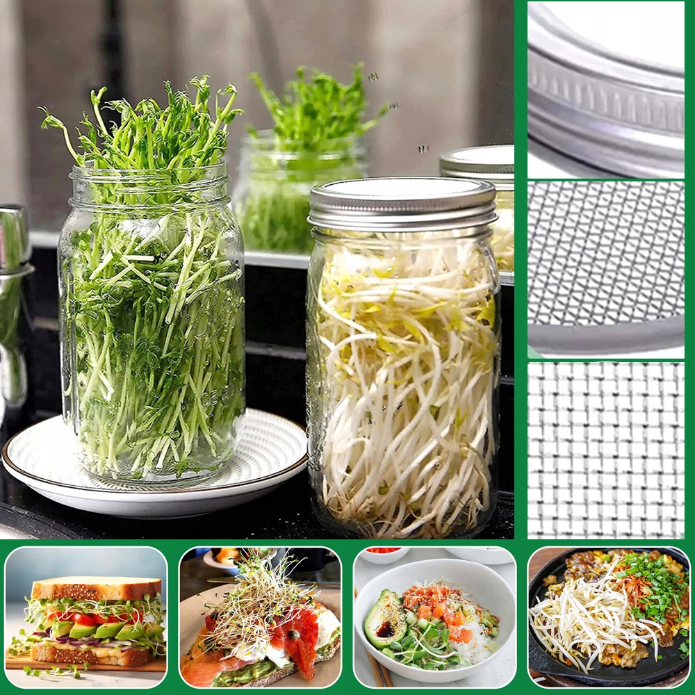 - крышка изготовлена из нержавеющей стали, которая является устойчивой к нержавеющей и коррозии, поэтому вам не нужно беспокоиться о формировании вредных веществ, что безопаснее для роста ростков бобов. Небольшой фильтр предотвращает падение семян и насекомых.