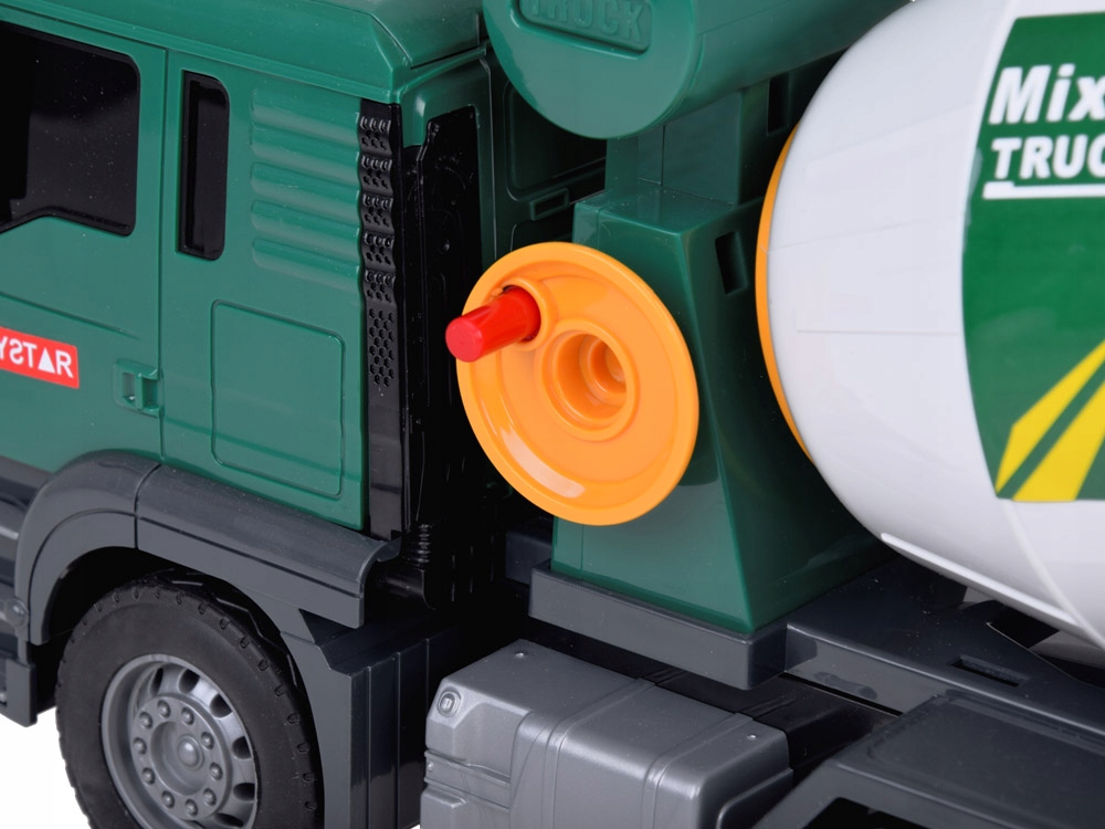 Зеленая бетономешалка – идеальная игрушка для маленьких любителей строительной техники. Он оснащен звуковыми эффектами и движущимися элементами, которые добавляют реалистичности каждой игре. Барабан бетоносмесителя можно вращать, имитируя перемешивание бетона, а функциональная воронка позволяет «переливать» смесь.