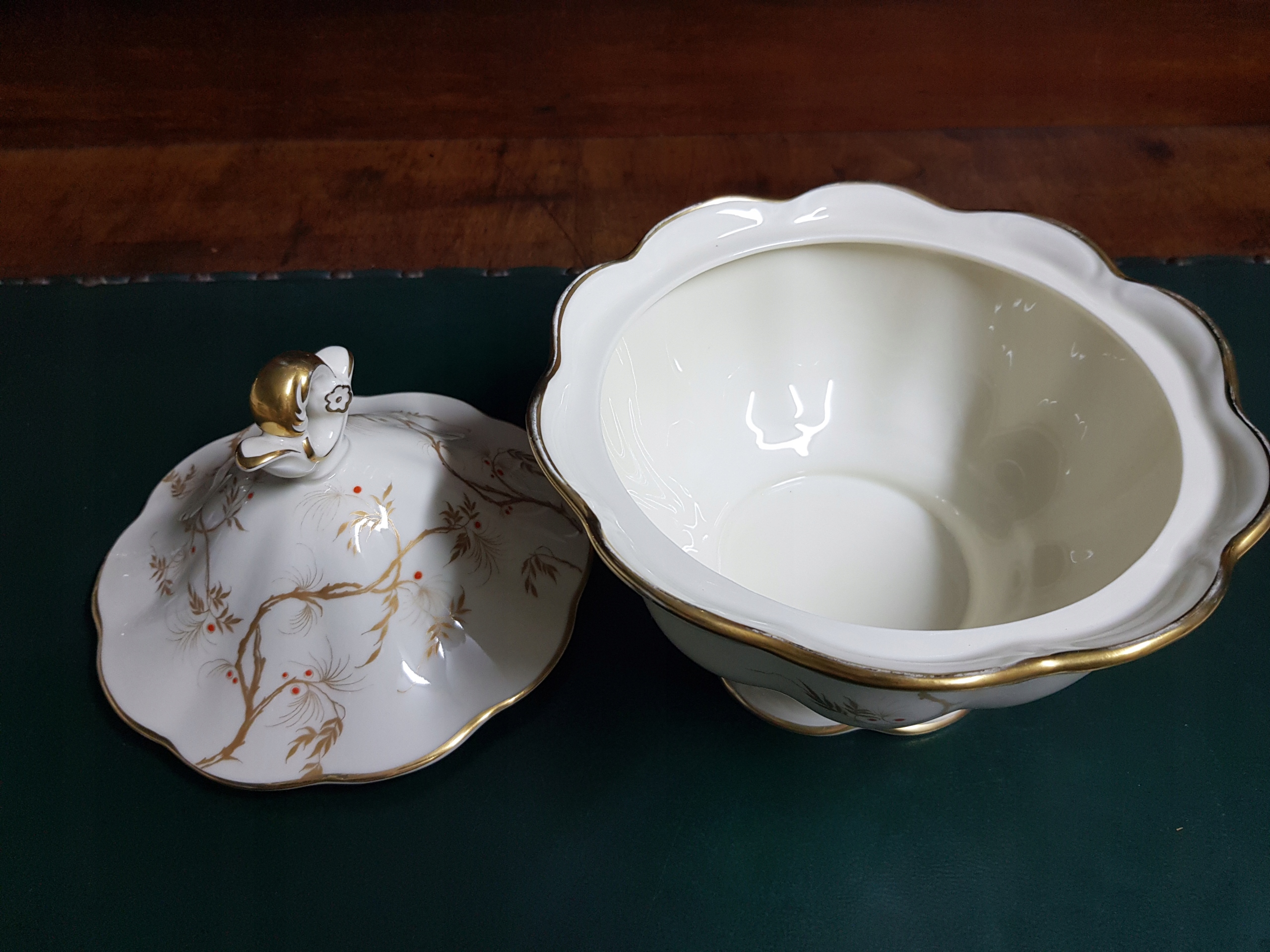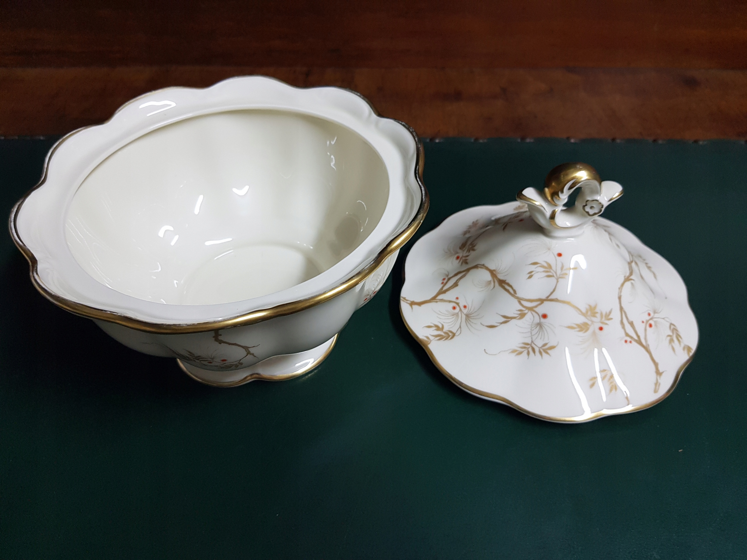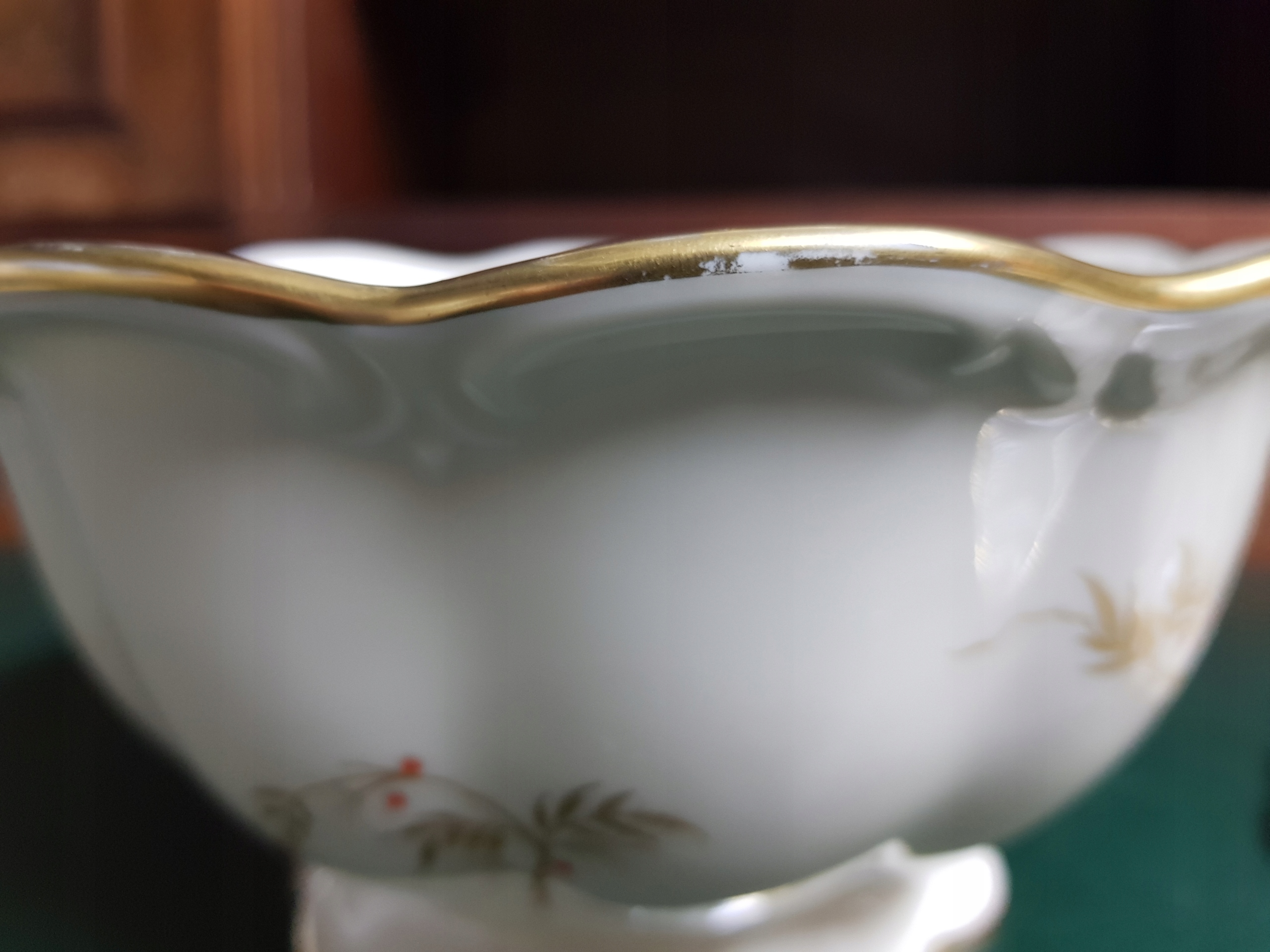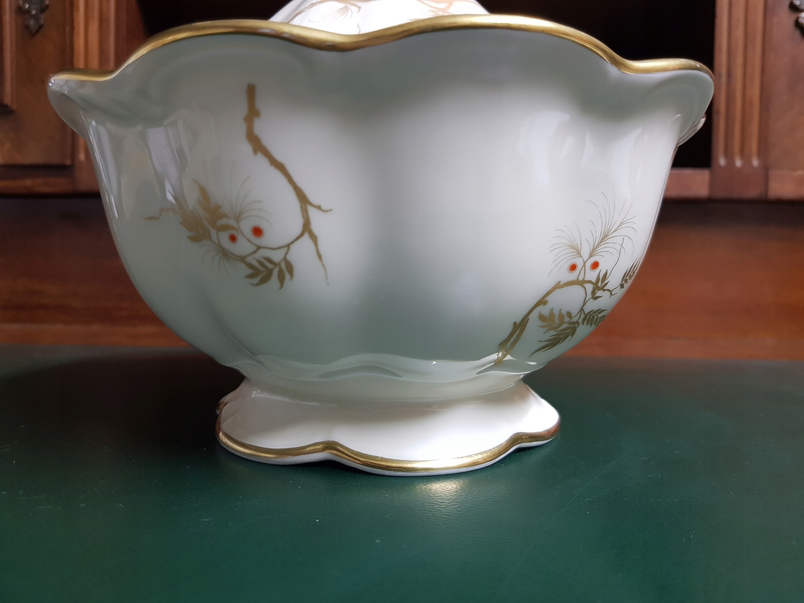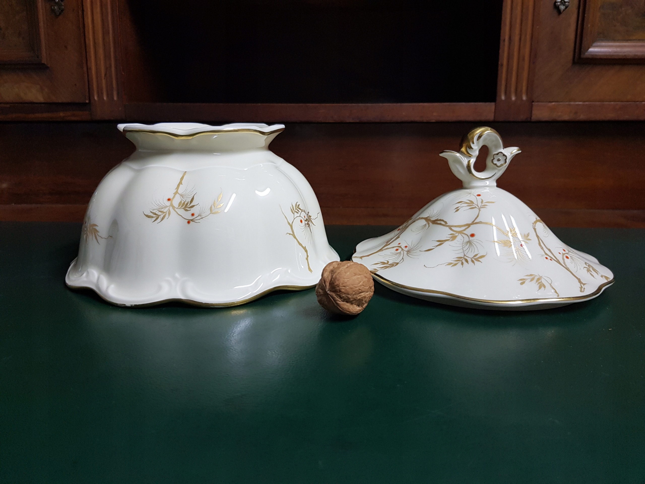 Предмет аукциона - большая коробка шоколада из Веймара.Модель Карла.Фарфор кремового цвета.Цветочный декор.