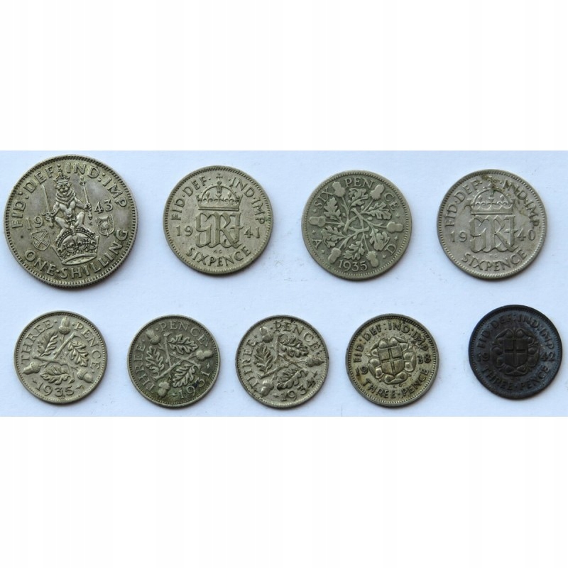 Велика Британія, 5 x 3p, 3 x 6p, шилінг, 1931-1943, срібло