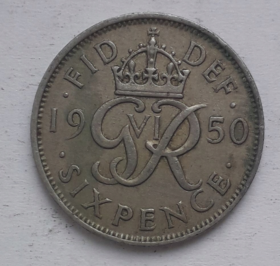 Великобритания 6 пенсов 1950 года Король Георг VI