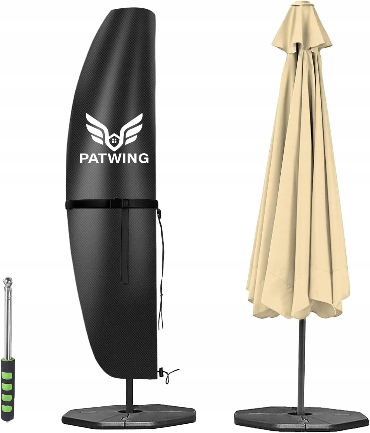 ➡️ Простота установки на большие зонты — выдвижная штанга длиной 1,2 м и треугольная кнопка над молнией облегчают надевание. Подходит для садовых, банановых и выступающих зонтов диаметром 2-4 м.