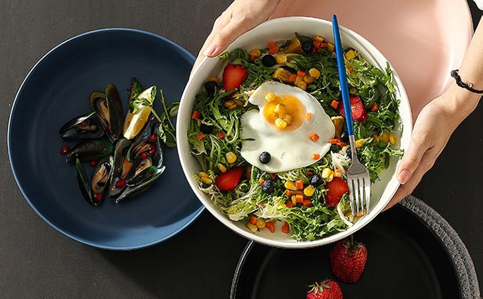 Сделано из экологической керамики высочайшего качества, неоксичной, безопасной в посудомоечной машине, микроволновой печи и морозильной камере. Без пластиковых и вредных химических веществ, здоровый салат для вашей семьи. Легко чистить с помощью ручного мытья или в посудомоечной машине.
