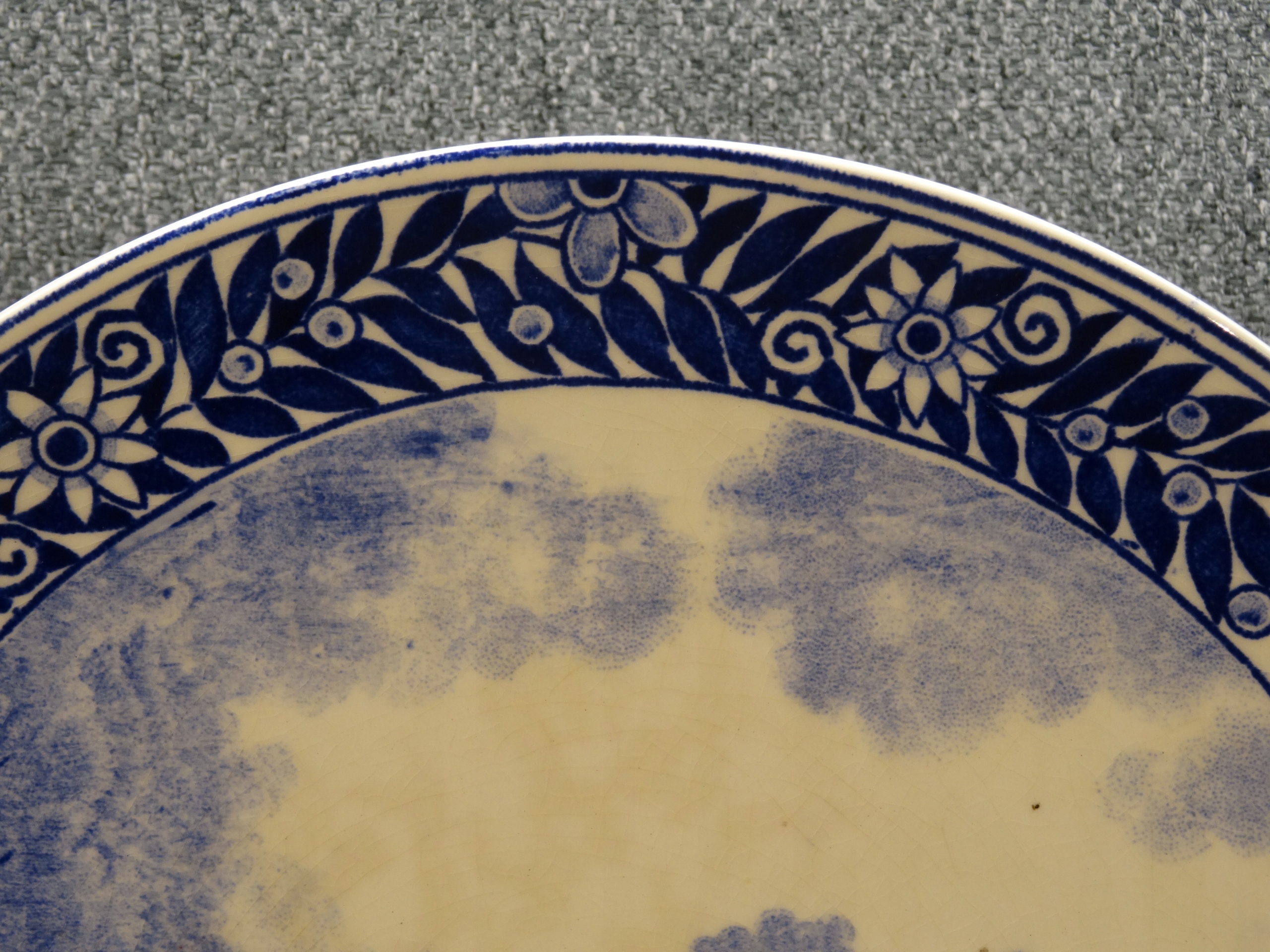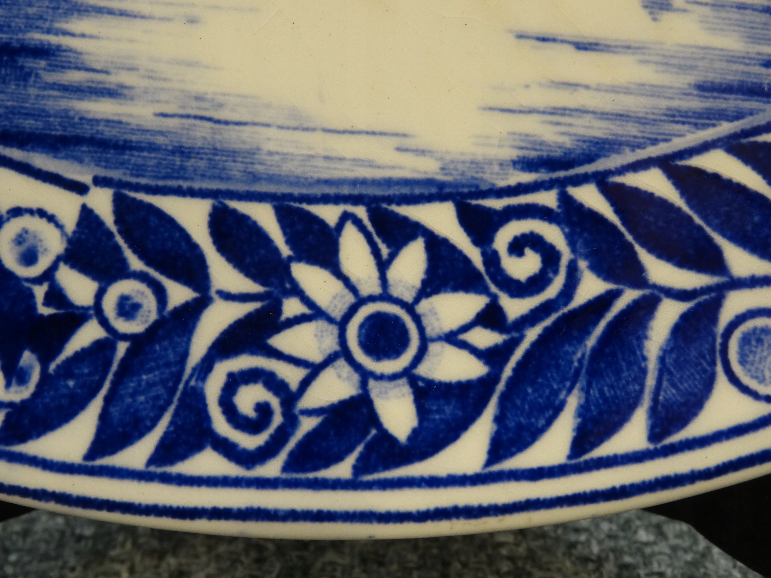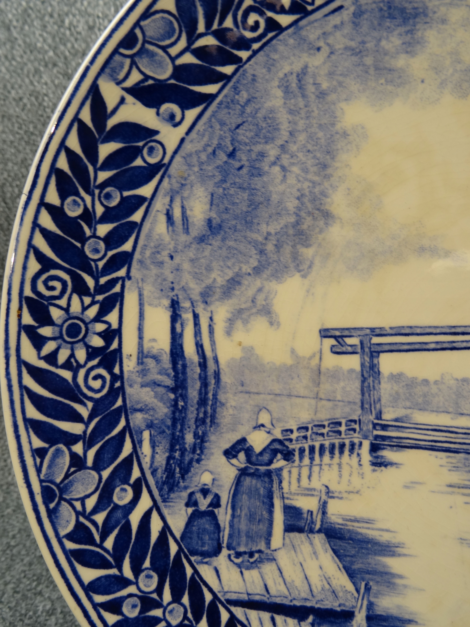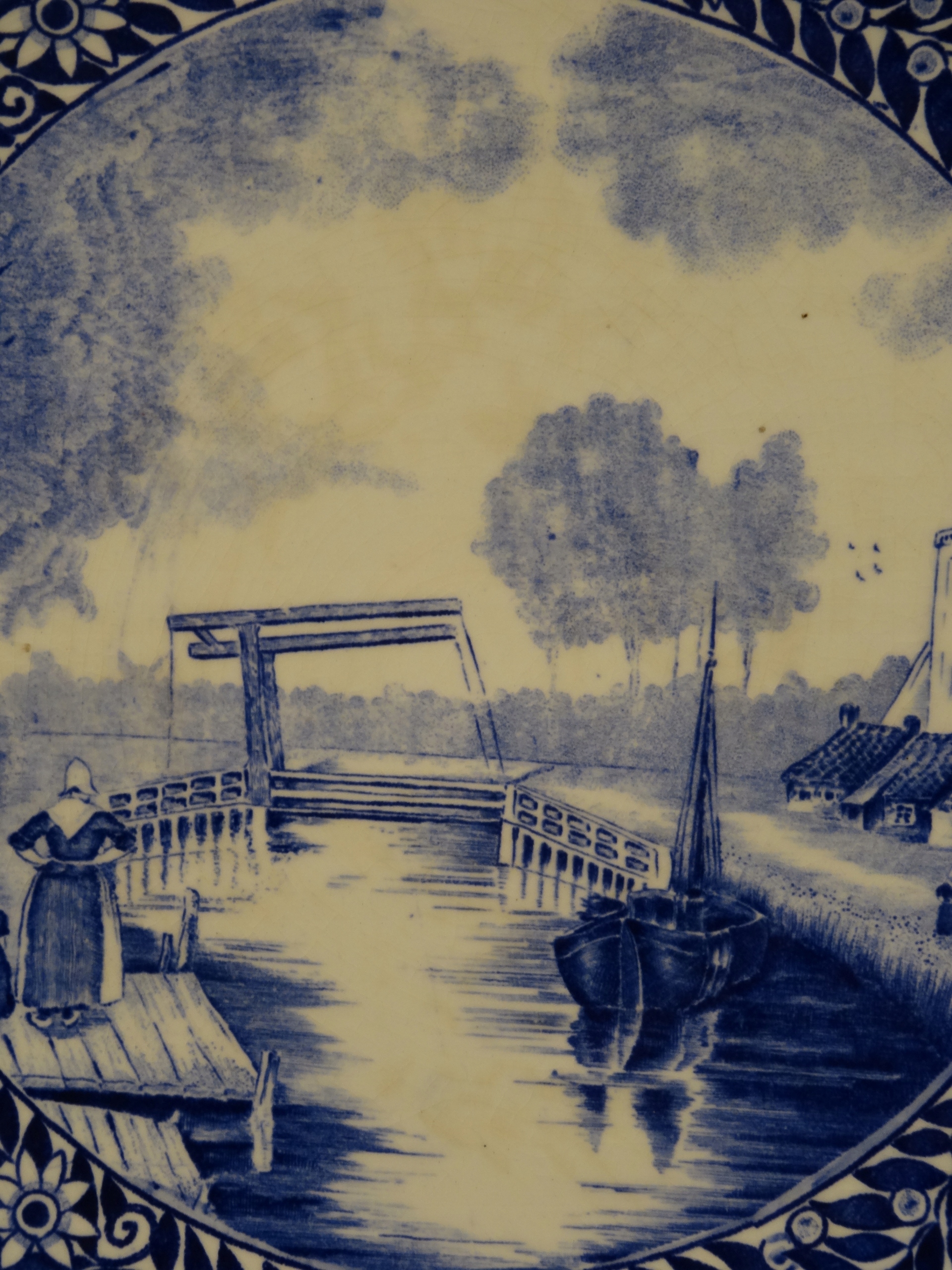 Большая декоративная кобальтово-синяя ТАРЕЛКА пейзажный мост через канал Бельгия ДЕЛЬФТС
