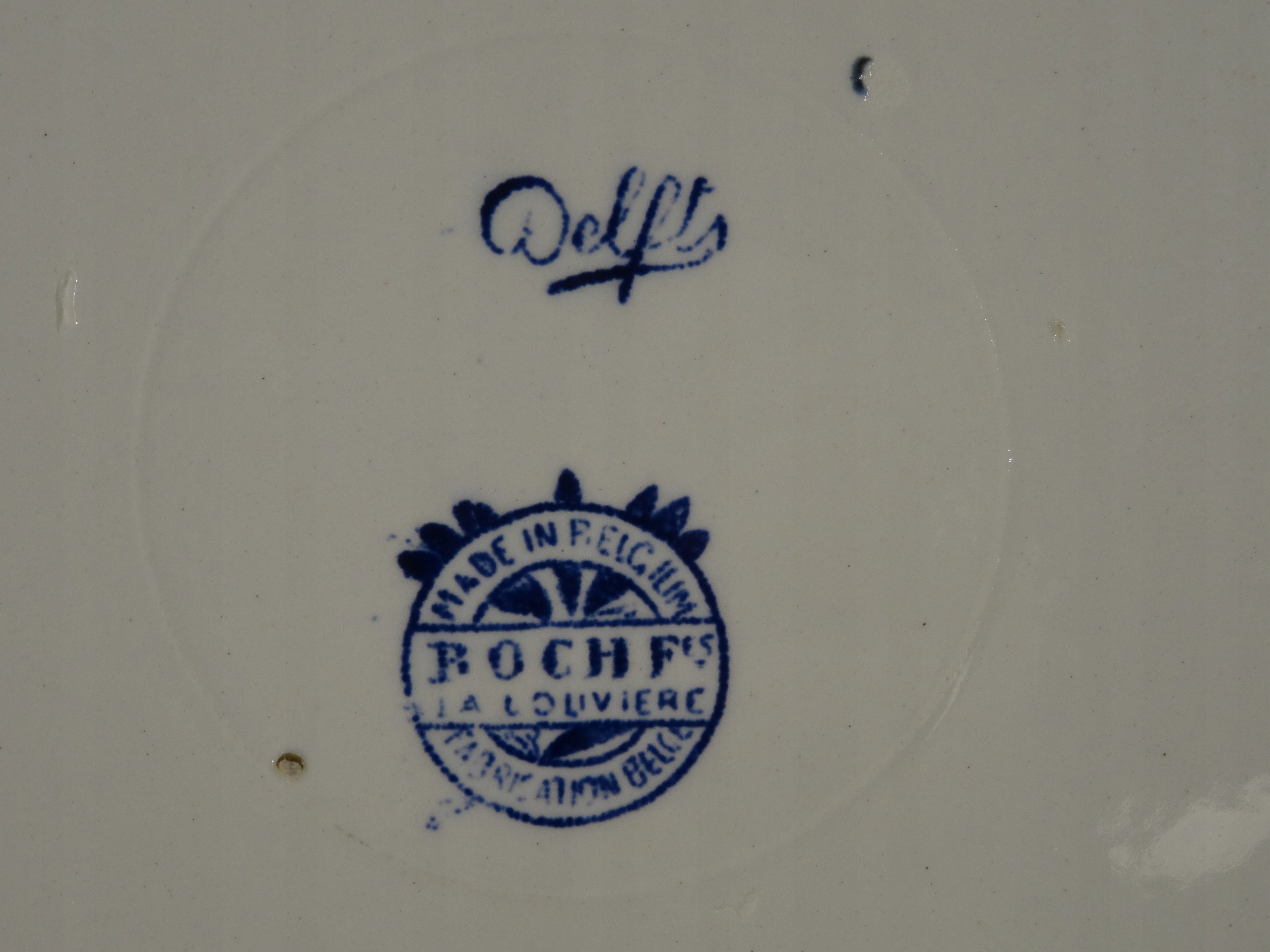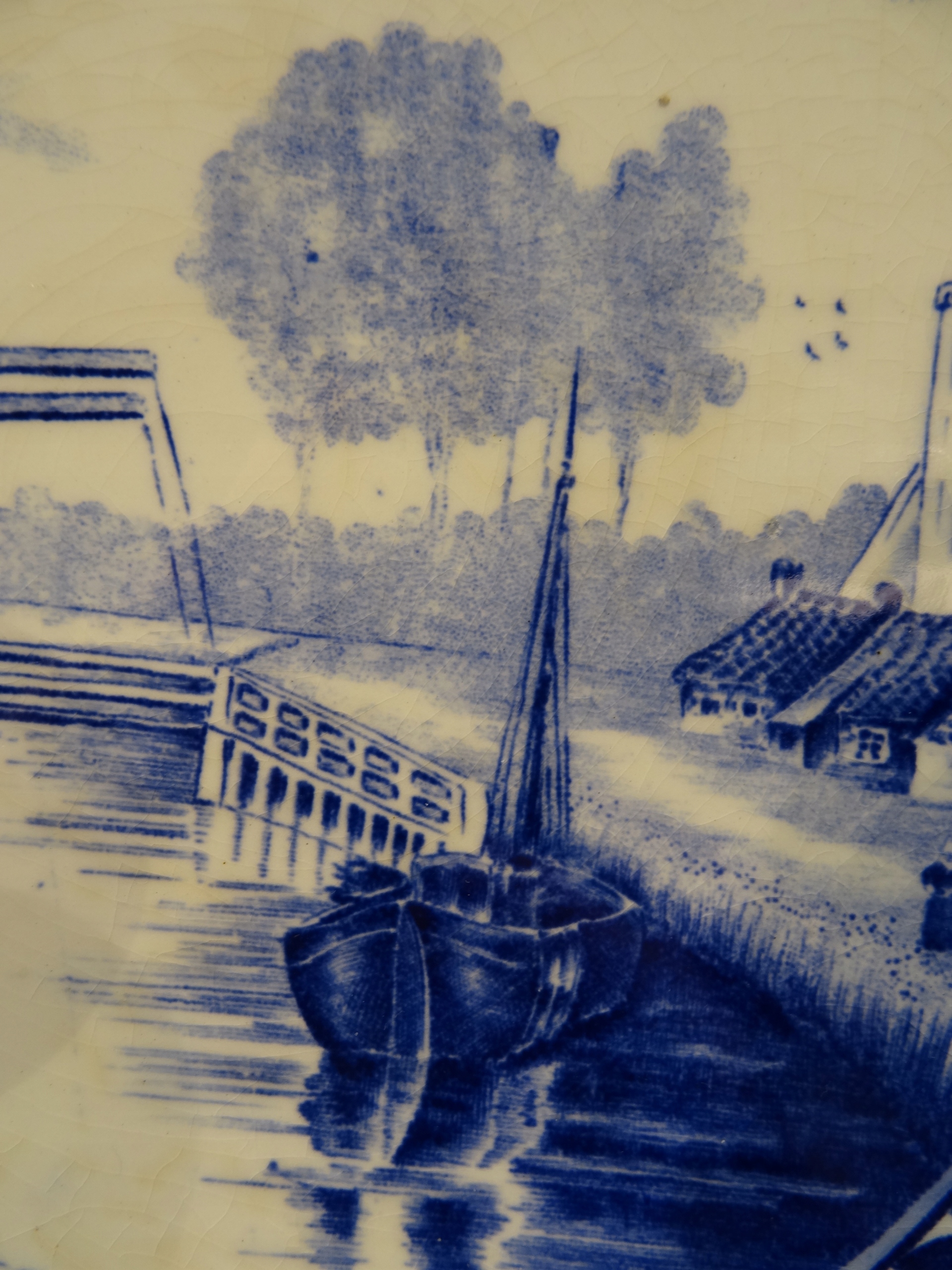 Большая декоративная синяя ТАРЕЛКА с пейзажем; пейзаж, канал, лодка, мост, постройки Бельгия DELFTS. Возможность подвешивания.