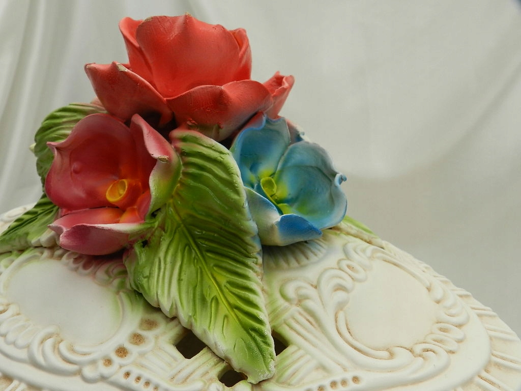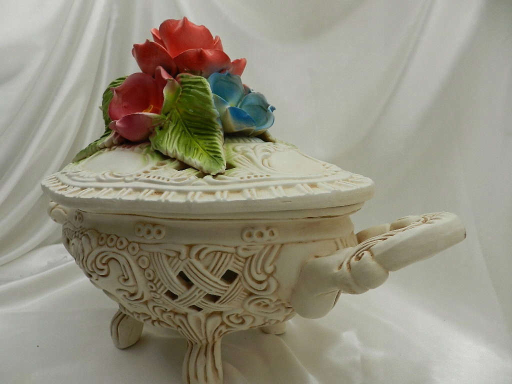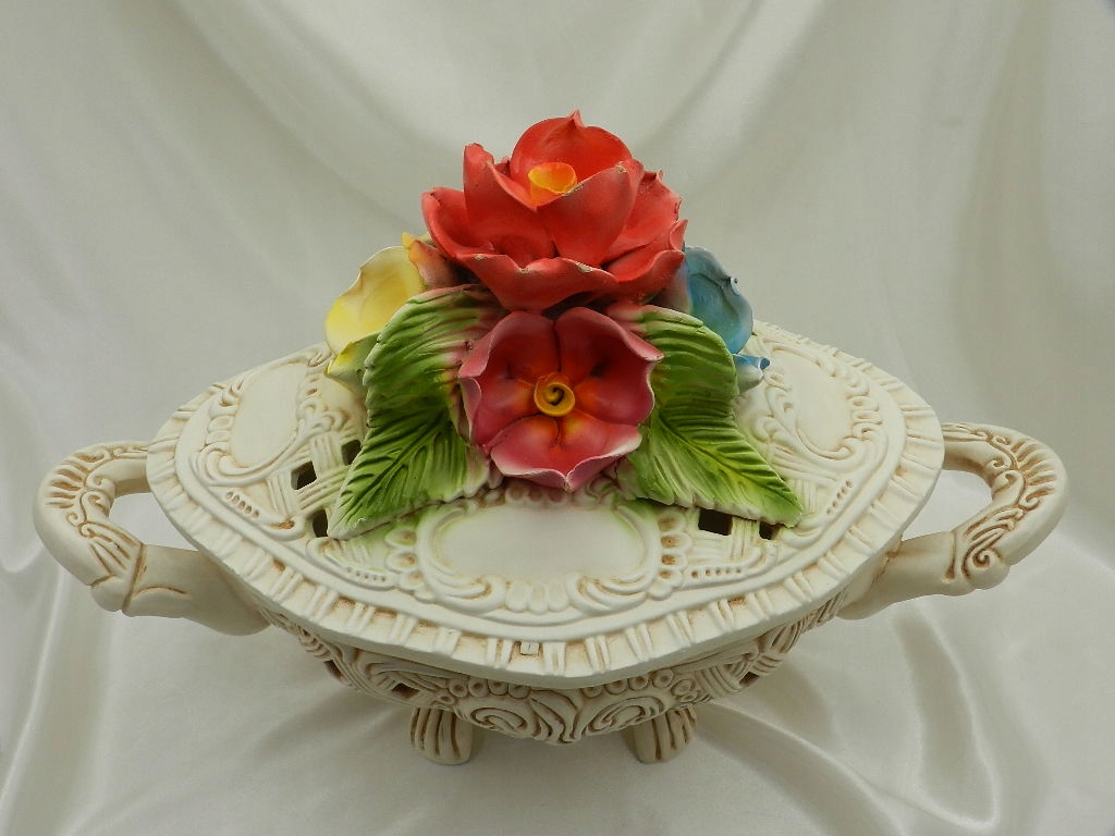 Большая декоративная ваза в стиле каподимонте, сделанная в Италии 1950 -х годов