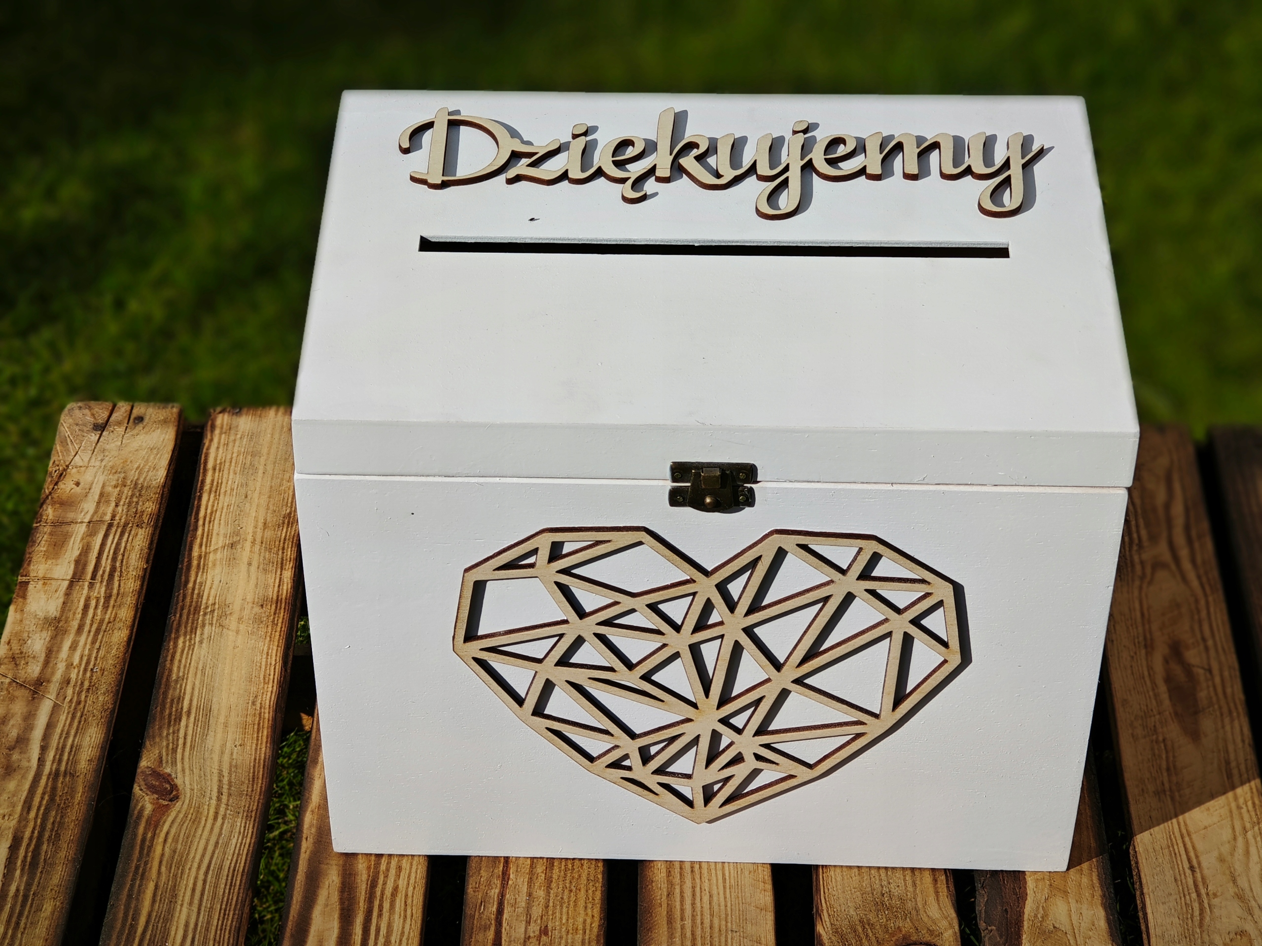 Большая деревянная шкатулка-коробка для свадебных конвертов с надписью «Спасибо» и сердечком, закрытая на замок. Самыми распространенными подарками жениху и невесте являются конверты с деньгами, поздравительные открытки, скретч-карты или лотерейные билеты. Наша большая деревянная коробка для свадебных конвертов идеально подойдет для этого особенного дня, в нее можно поместить все, что угодно. Наша шкатулка сочетает в себе функциональность с элегантностью и выполнена с вниманием к каждой детали. Коробка-конверт имеет большое отверстие вверху. Ящик закрывается на защелку, что обеспечивает безопасность и очень функционально. Ящик 100% экологический, изготовлен из дерева. Надпись спасибо и сердечко, вырезанное из фанеры натурального цвета.