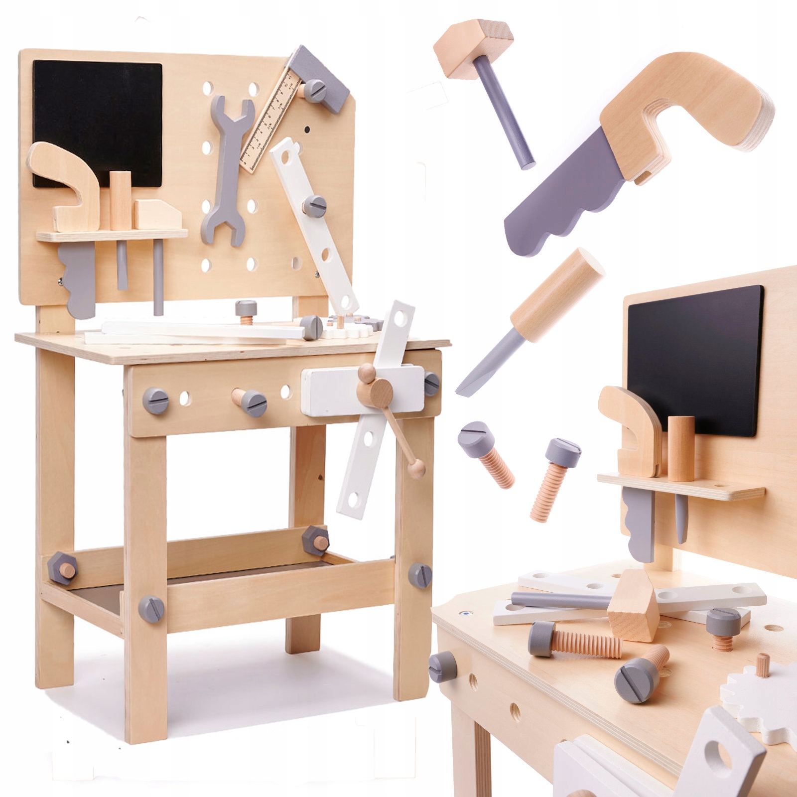 Деревянная мастерская для детей - это отличная игрушка , которая приведет малыша в мир взрослых. Семинар, оснащенный набор инструментов , такого как отвертка, пила или молоток, позволяет ребенку сочувствовать роли «золотой руки». Дополнительная Small Molk Board обеспечит действие плана действий или создание технических чертежей.