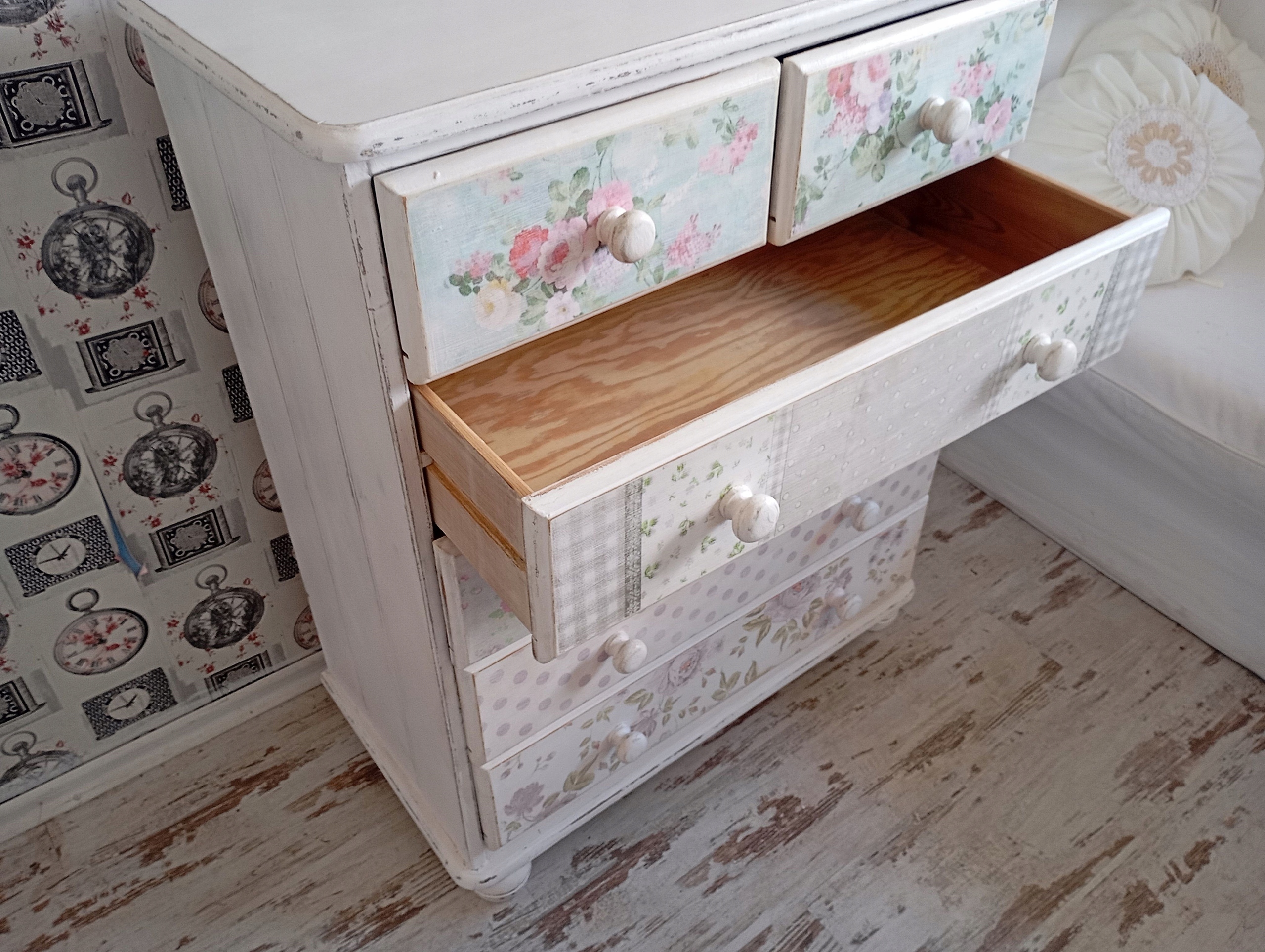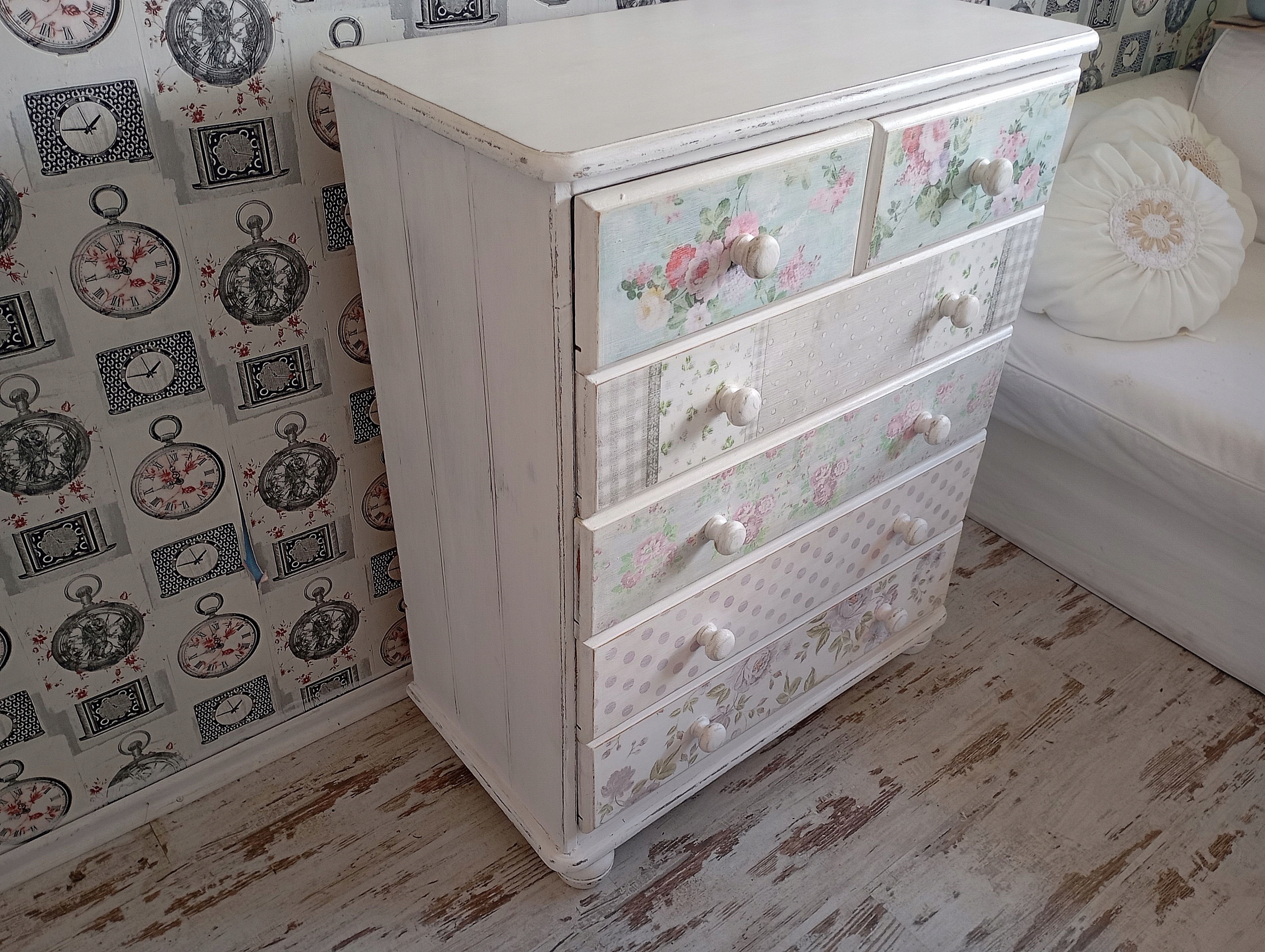 Большой деревянный окрашенный шкаф сундук с ящиками потертый шик