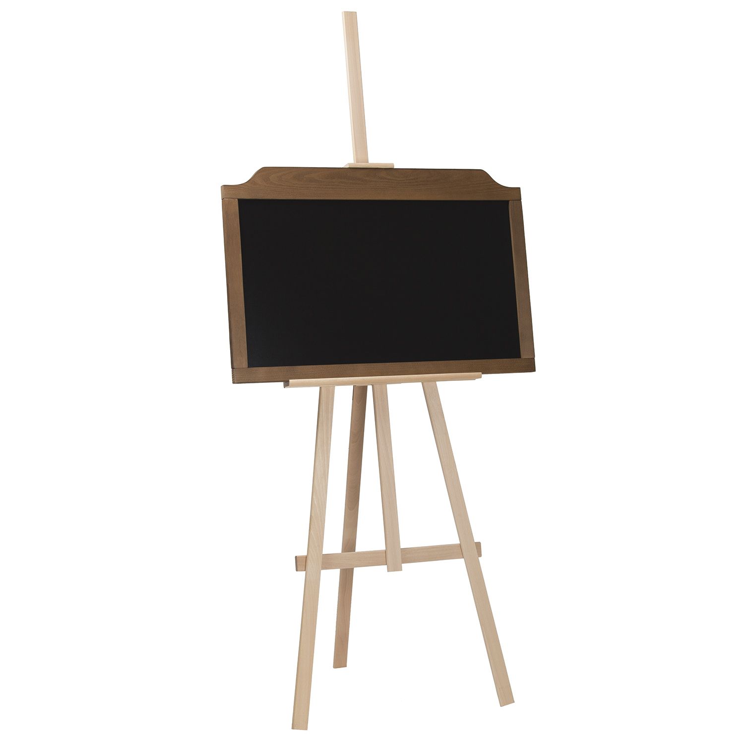 Большая горизонтальная меловая доска в деревянной рамке с волнообразной верхней полосой. На нем можно писать мелом или меловым маркером. Доска привлекает внимание, а благодаря большому размеру ее можно расположить на большем расстоянии от получателя. Прекрасно смотрится на мольберте. Ваш ЛОГОТИП, название компании или реклама также могут быть выгравированы лазером на верхней полосе доски. Доска с гравировкой гораздо эффективнее привлекает внимание потенциальных клиентов.