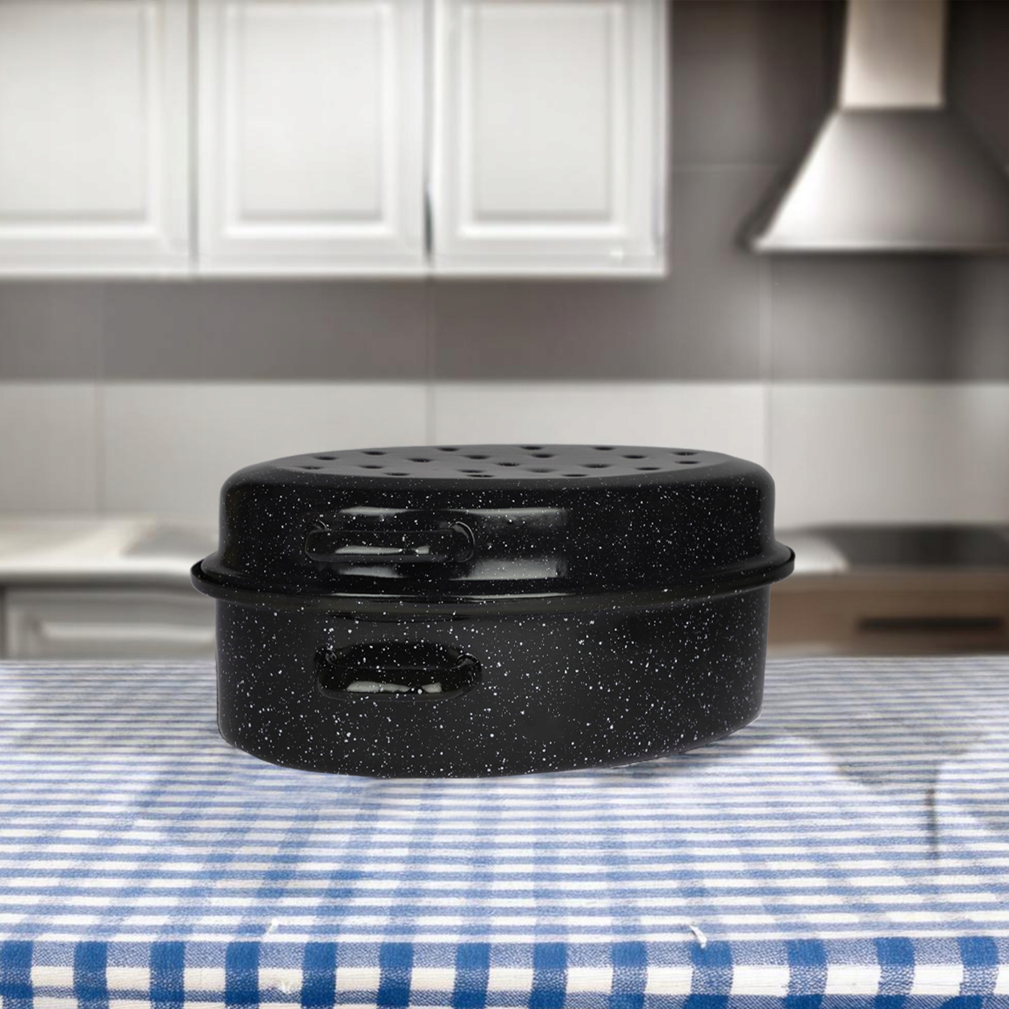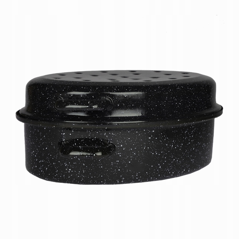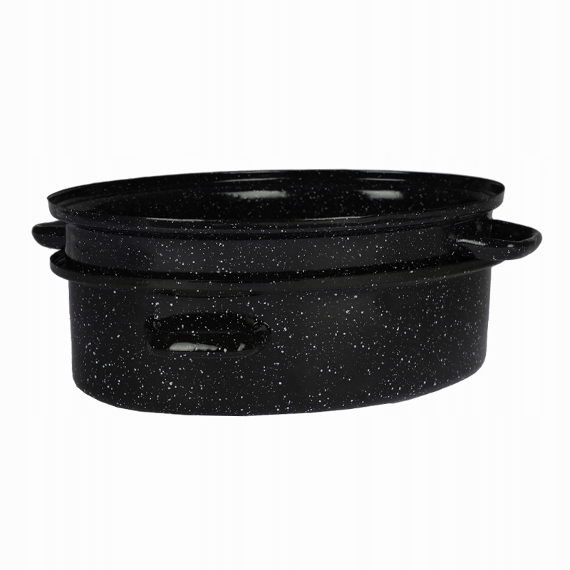Представляем Вам эмалированная жаровня черного цвета. Он будет отлично смотреться на кухне в стиле модерн, а также на кухне, стилизованной под времена Польской Народной Республики.